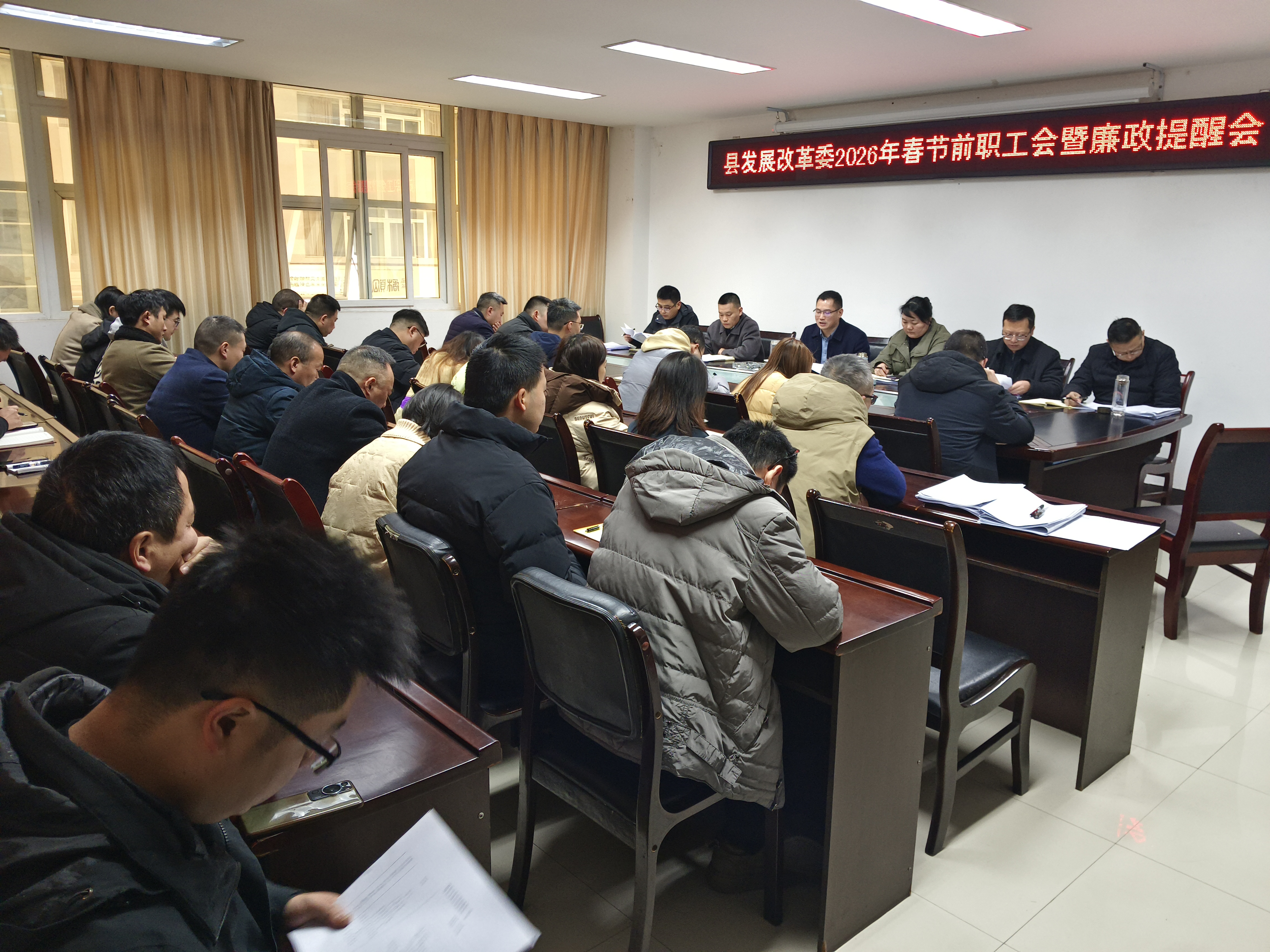 2月13日,县发展改革委组织召开2026年春节节前廉政提醒会,总结2025年度发展改革工作,部署2026年发展改革重点工作,传达学习市纪委六次全会精神、贯彻落实县纪委六次全会精神。