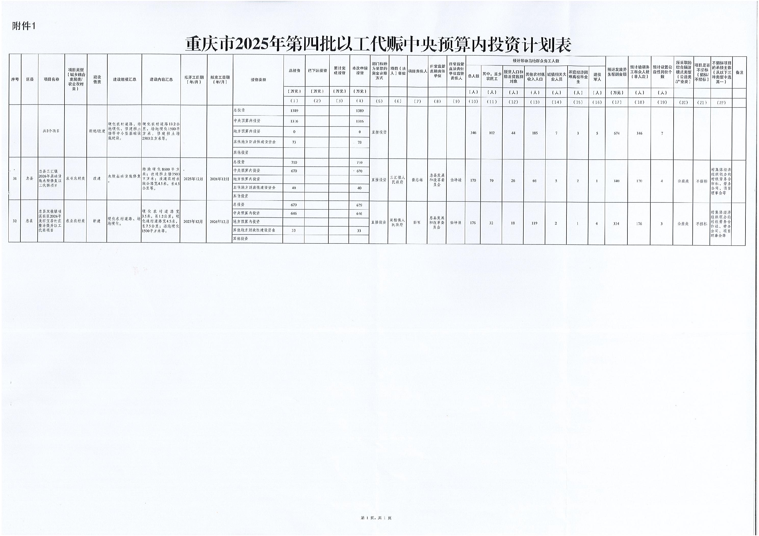 | 重庆市2025年第四批以工代赈中央预算内投资计划表 | ||||||||||||||||||||||||||||||||