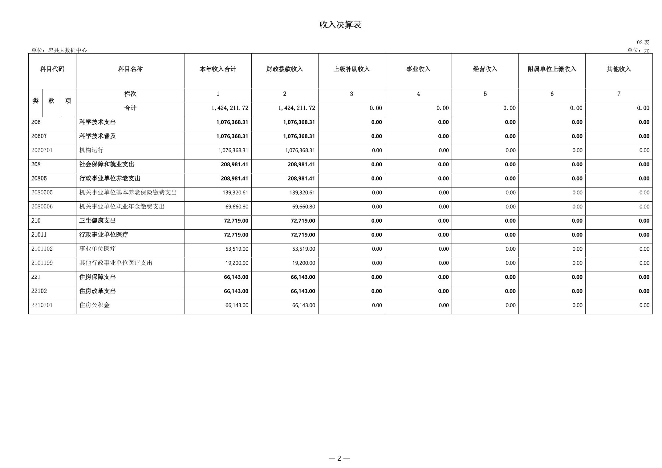 2.收入情况。2024年度收入合计142.42万元,较上年决算数减少51.98万元,下降26.7%,主要原因是本年机构改革,政务信息系统迁移上云服务采购等项目资金调减。其中:财政拨款收入142.42万元,占100.0%;此外,使用非财政拨款结余和专用结余0万元,年初结转和结余0万元。