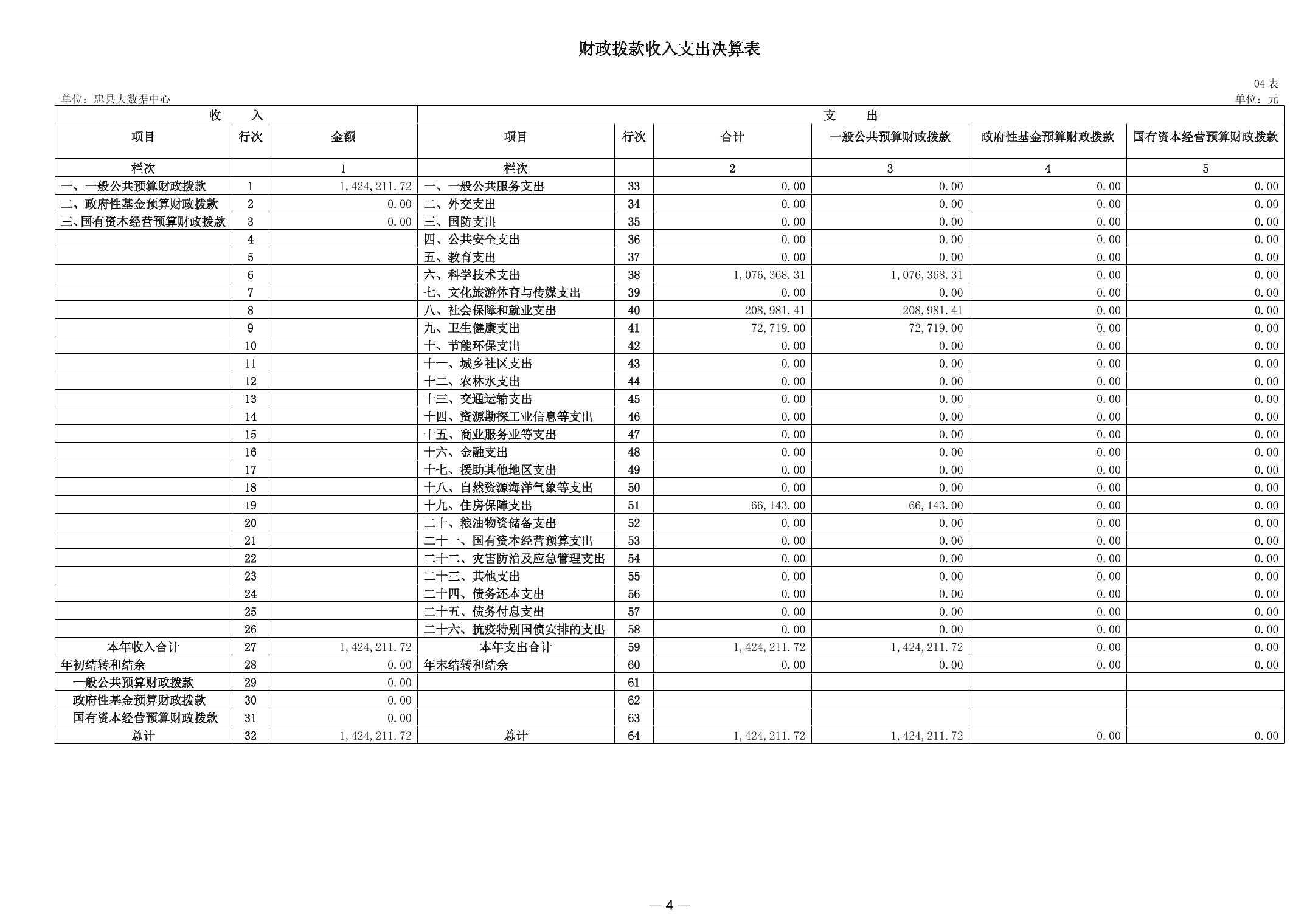 4.结转结余情况。2024年度年末结转和结余0万元。