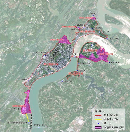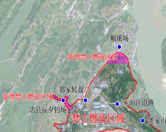 忠县烟花爆竹禁止、集中燃放区域示意图