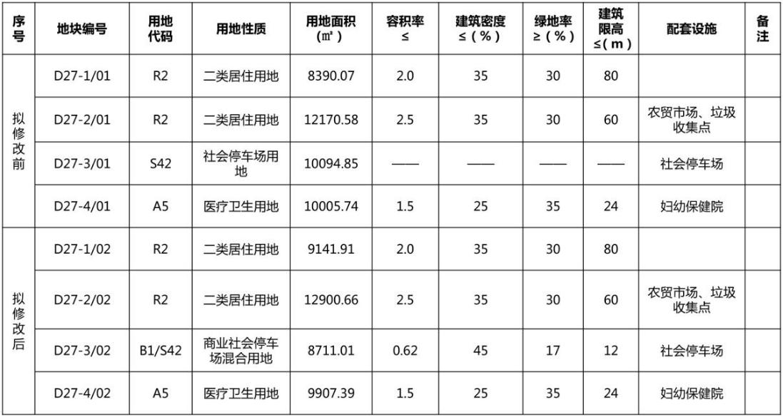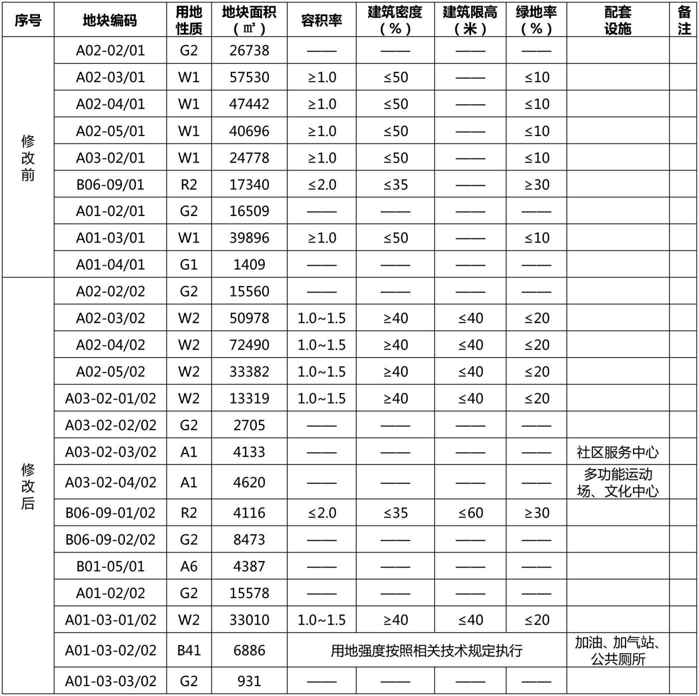 3.修改前、后地块指标一览表