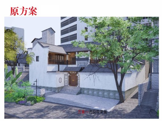 修改内容:1.立面装饰材质与色调调整:建筑正立面以及面向任家巷子的围墙外侧调整为古片砖饰面;其余外立面调整为灰色真石漆饰面。2.二层走道栏杆形式调整:将二层走道栏杆调整为砌体栏板,外表面饰以镂空砖雕图案。3.增设垂直电梯:于建筑屏门旁增设垂直电梯一部。4.建筑面积调整:一层面积由原565.21㎡调整为528.81㎡,减少36.4㎡。二层面积由原513.58㎡调整为504.34㎡,减少9.24㎡。新增闷顶层,面积56.55㎡。新增电梯井道,面积7.74㎡。调整后总建筑面积:1094.44 ㎡。建筑面积变化:较原方案增加18.65㎡。