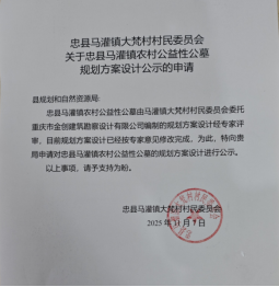 公示地点:1.忠县规划和自然资源局 2.忠县政府网 3.项目所在地 4.马灌镇政府5、大梵村村委会