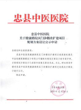 附:忠县中医医院健康路院区门诊楼改扩建项目总平面图、经济指标、效果图、忠县中医医院申请公示申请。