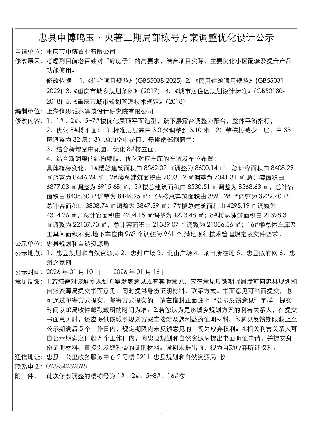 重庆忠县中博鸣玉·央著二期项目方案设计公示