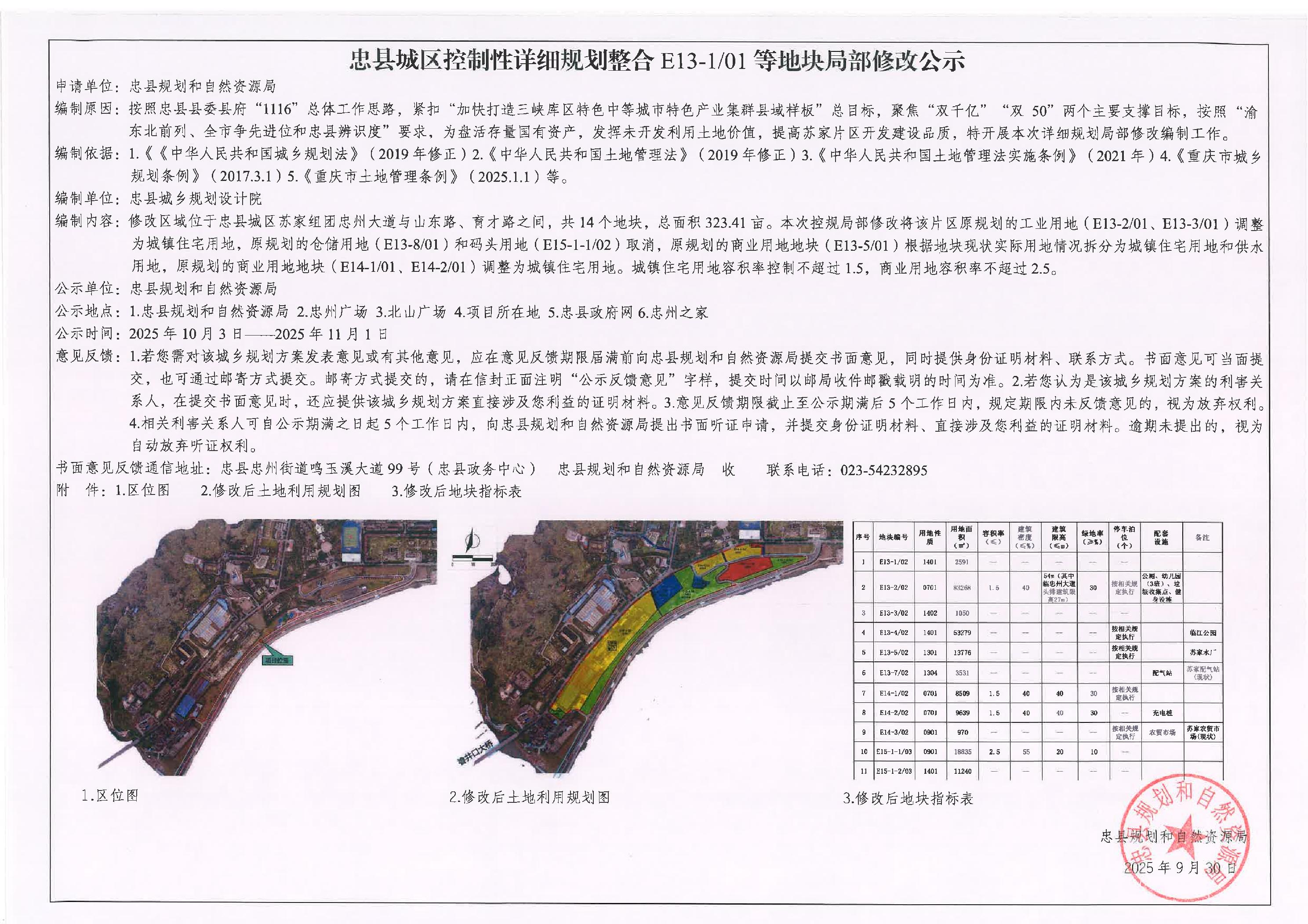 忠县城区控制性详细规划整合E13-1/01等地块局部修改的公示