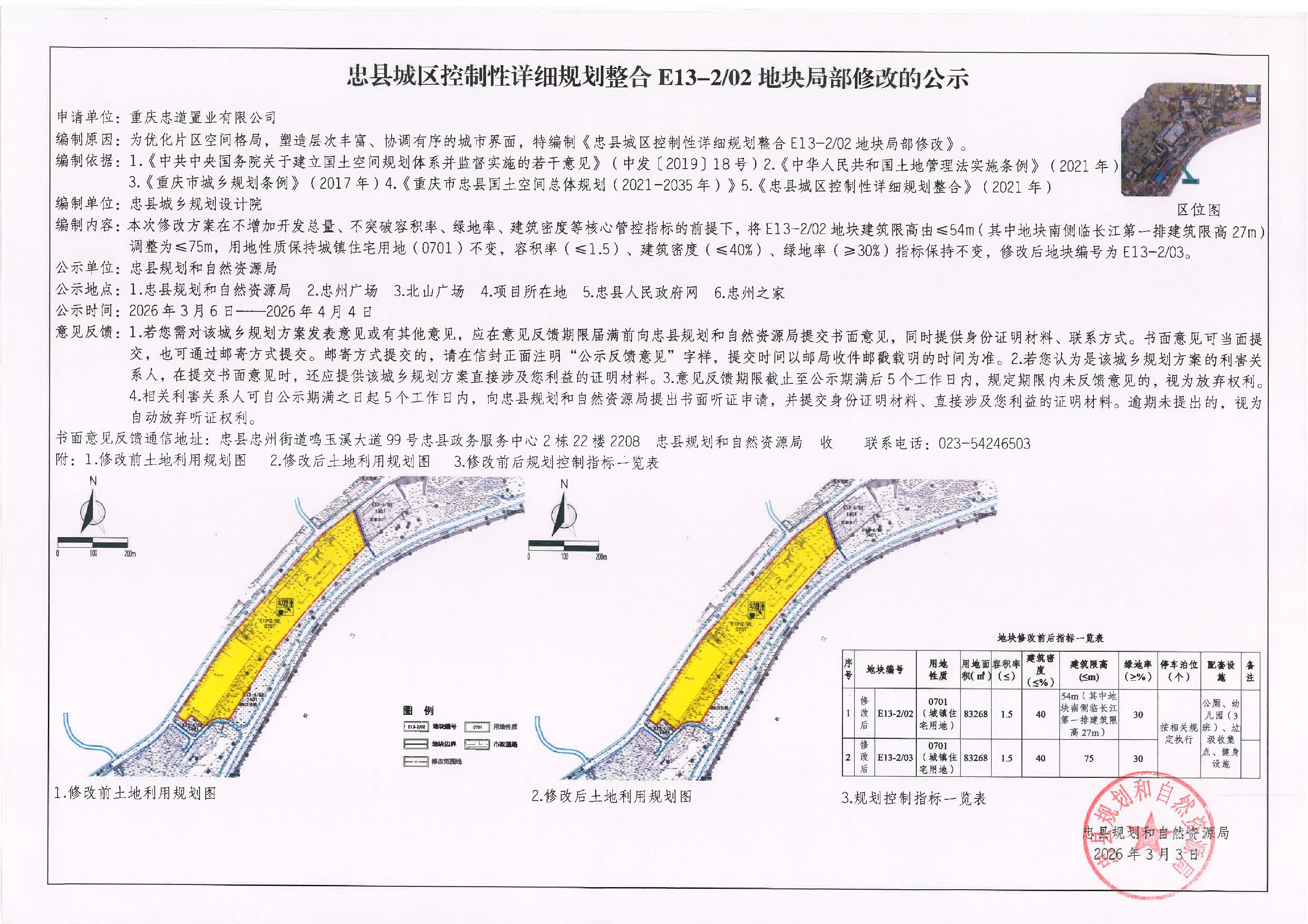 忠县城区控制性详细规划整合E13-202地块局部修改的公示