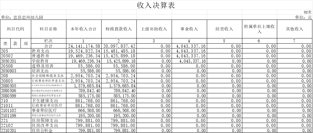 2.收入情况。2024年度收入总计2414.11万元,较上年决算数增加290.69万元,增长13.67%,主要原因是教师调入以及在职教职工工资调标,临聘人员增加。其中:财政拨款收入2009.78万元,占83.25%;事业收入404.33万元,占16.75%;经营收入0.00万元,占0.00%;其他收入0.00万元,占0.00%。此外,使用非财政拨款结余和专用结余0.00万元,年初结转和结余0.00万元。