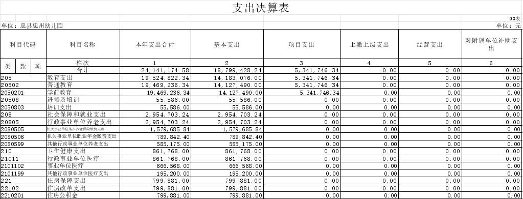 3.支出情况。2024年度支出合计2414.11万元,较上年决算数增加290.69万元,增长13.67%,主要原因是教师调入以及在职教职工工资调标,临聘人员增加。其中:基本支出1879.94万元,占77.87%;项目支出534.17万元,占22.13%;经营支出0.00万元,占0.00%。此外,结余分配0.00万元。