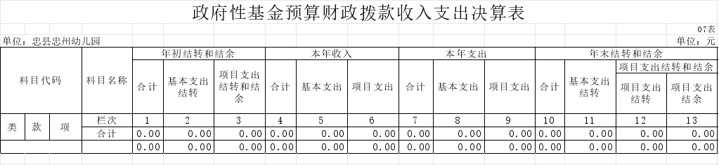 2024年度政府性基金预算财政拨款年初结转结余0.00万元,年末结转结余0.00万元。本年收入0.00万元,较上年决算数减少0.00万元,下降0.00%,主要原因是本单位2024年度无政府性基金预算财政拨款收支。本年支出0.00万元,较上年决算数减少0.00万元,下降0.00%,主要原因是本单位2024年度无政府性基金预算财政拨款收支。