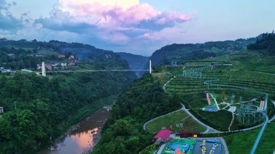 花田溪谷景区位于忠县黄金镇,300余亩的花卉观赏区可称得上是花海仙境。这里有西南地区最长的跨江玻璃桥-忠情廊桥,其跨度长280米,垂直高度110米,站在廊桥之上可以360度无死角俯瞰幽深峡谷。近赏花海美景,远眺万亩橘海。玻璃廊桥还采用3D+5D效果,集声、光、感于一体,营造出美轮美奂的奇异景观。花田溪谷内,除了四季有花的自然景观,还修复了以前的太平观、太平庙和万宝寨,在与大自然亲密接触的同时也能感受到溪谷内独特的历史人文色彩。