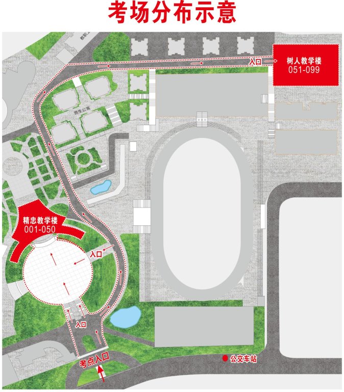 4.发往2个考点的公交专线发车点距离较近,上车前请注意观察线路牌或询问驾驶员,切勿坐错班车。