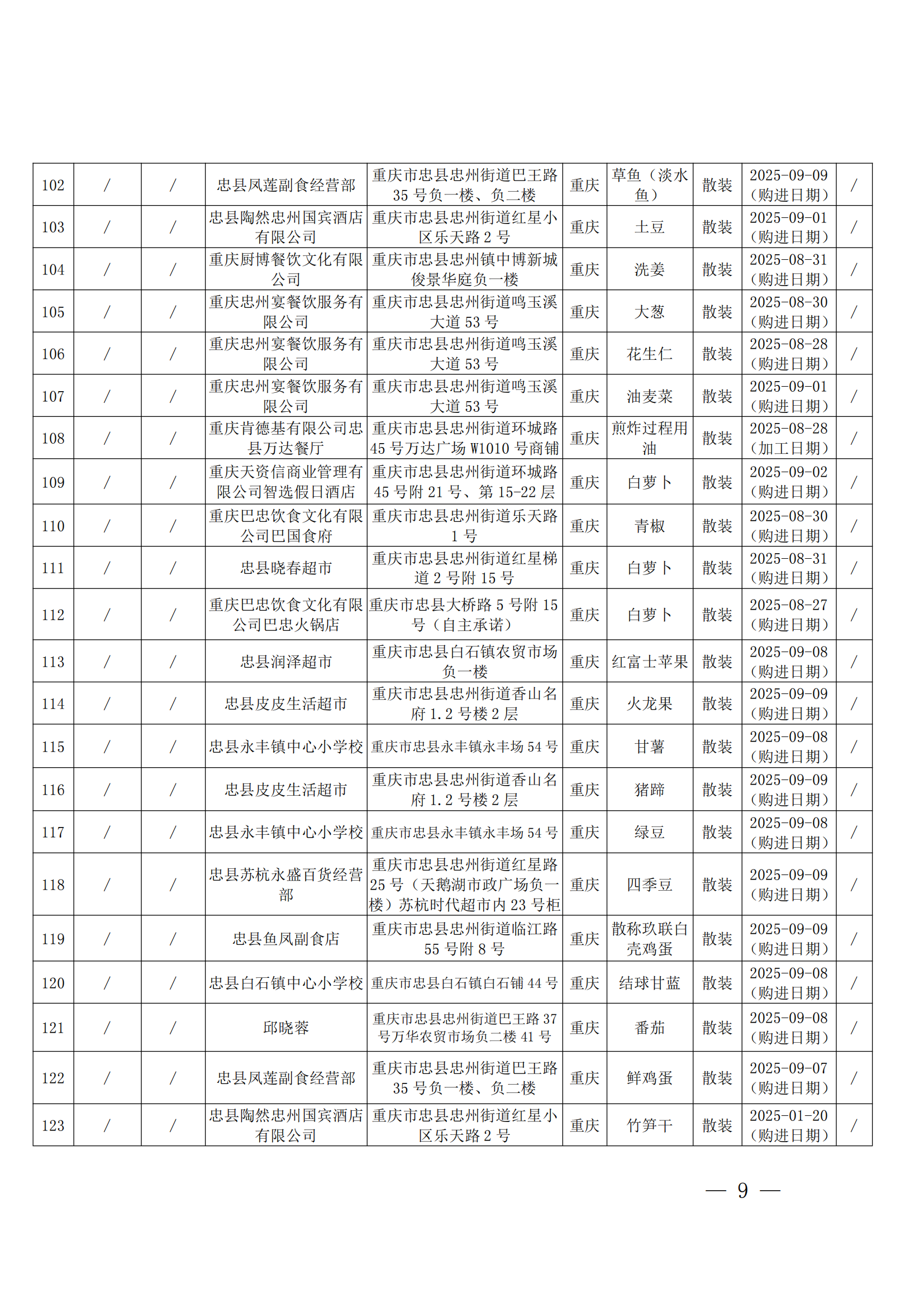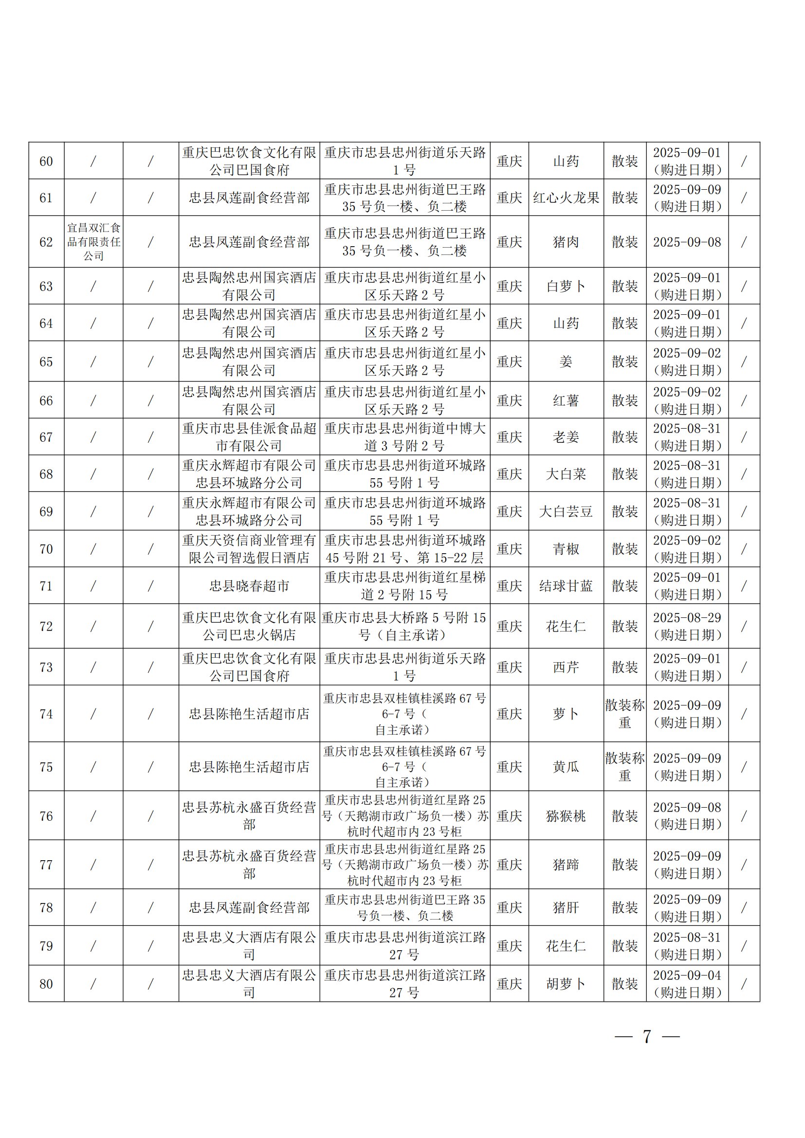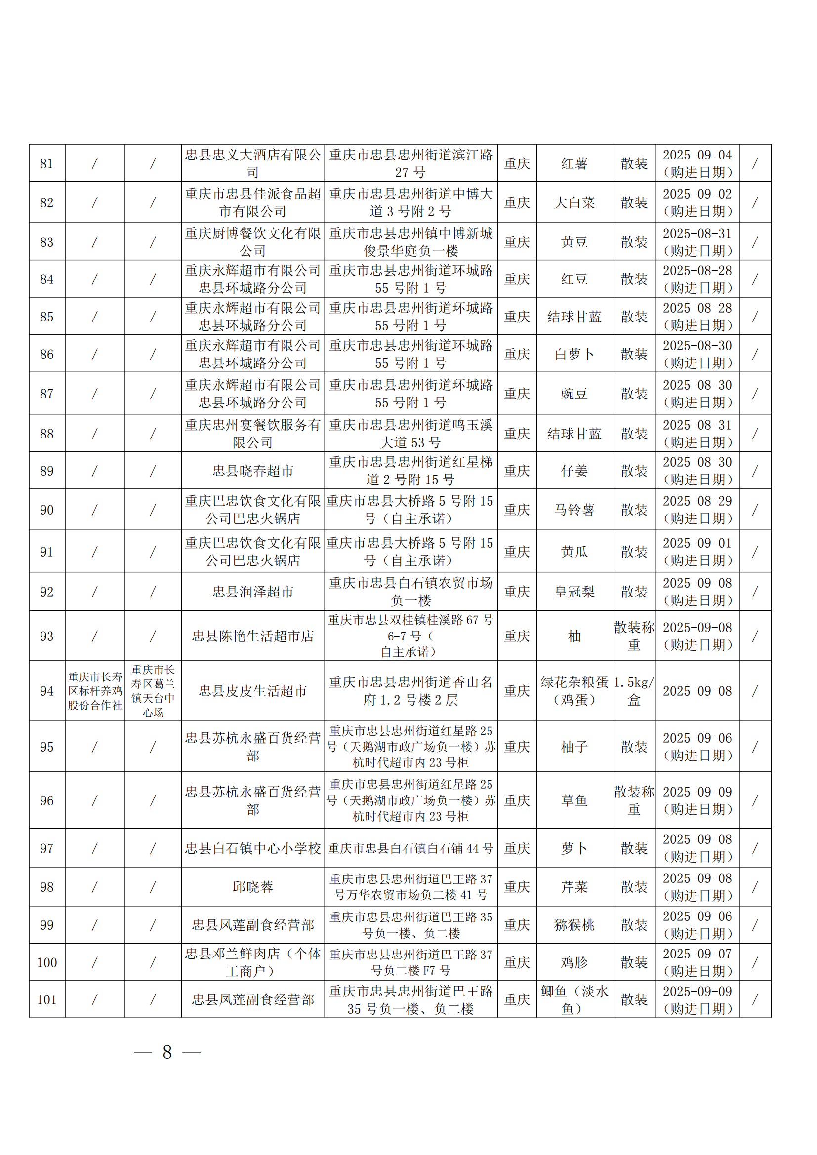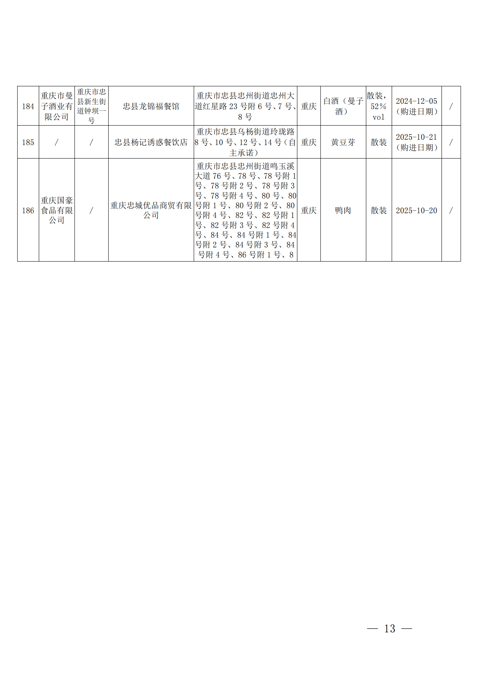 忠市监〔2025〕67号 忠县市场监督管理局关于198批次食品安全抽检情况的通告(2025年第6号)