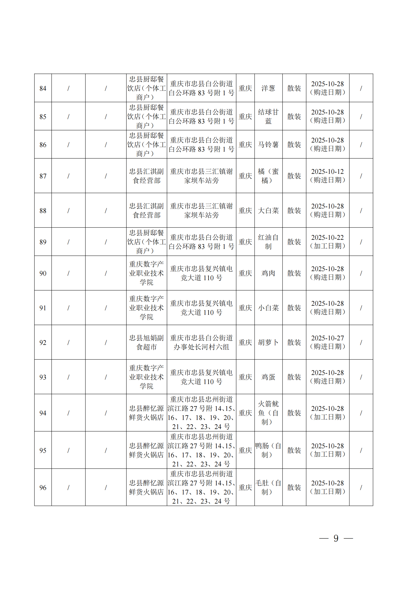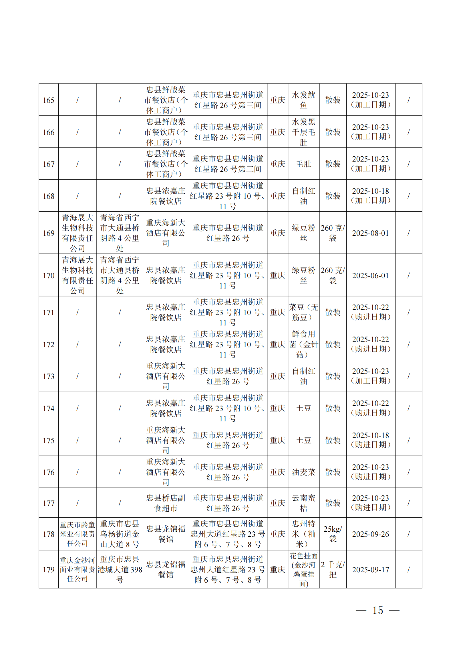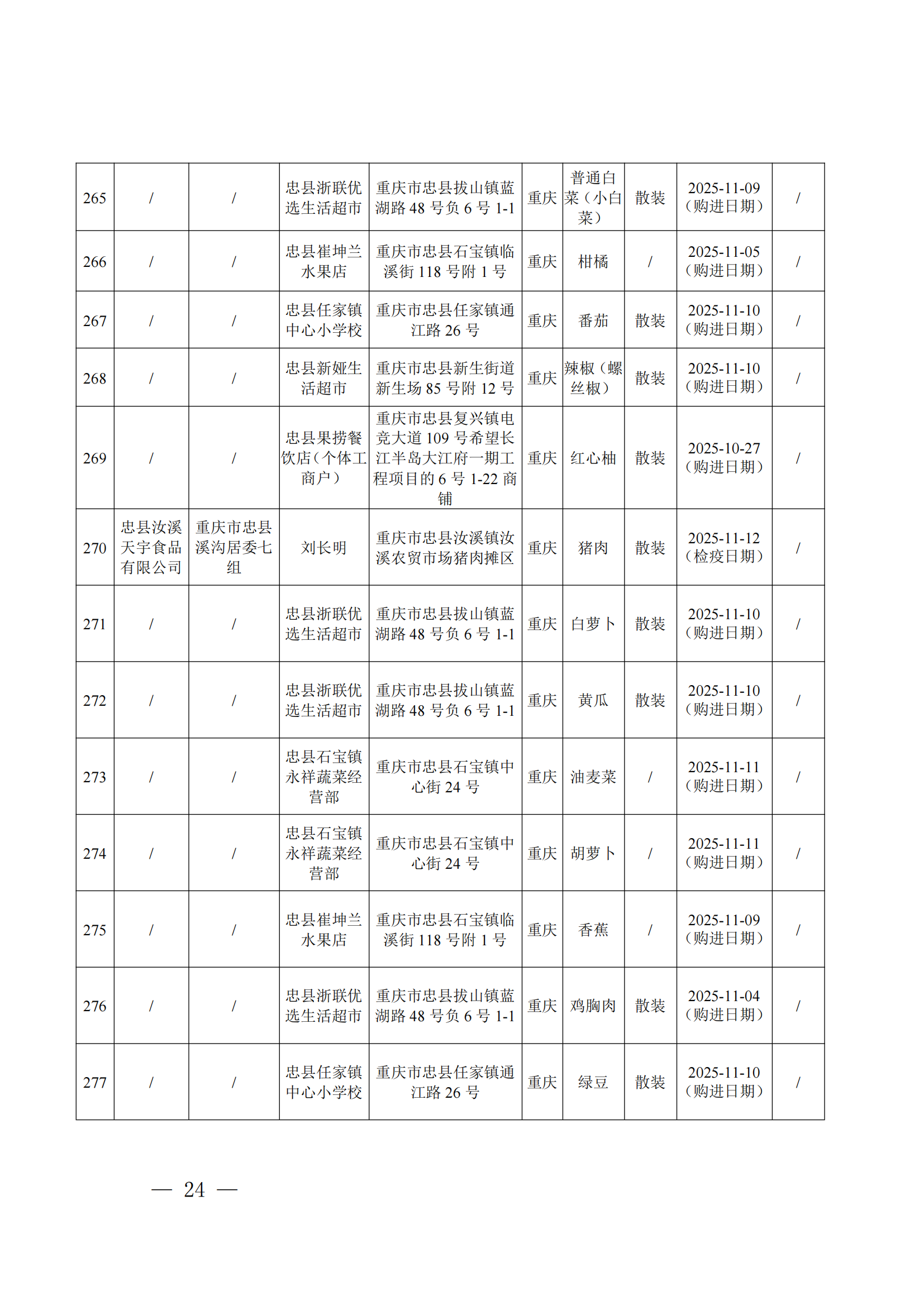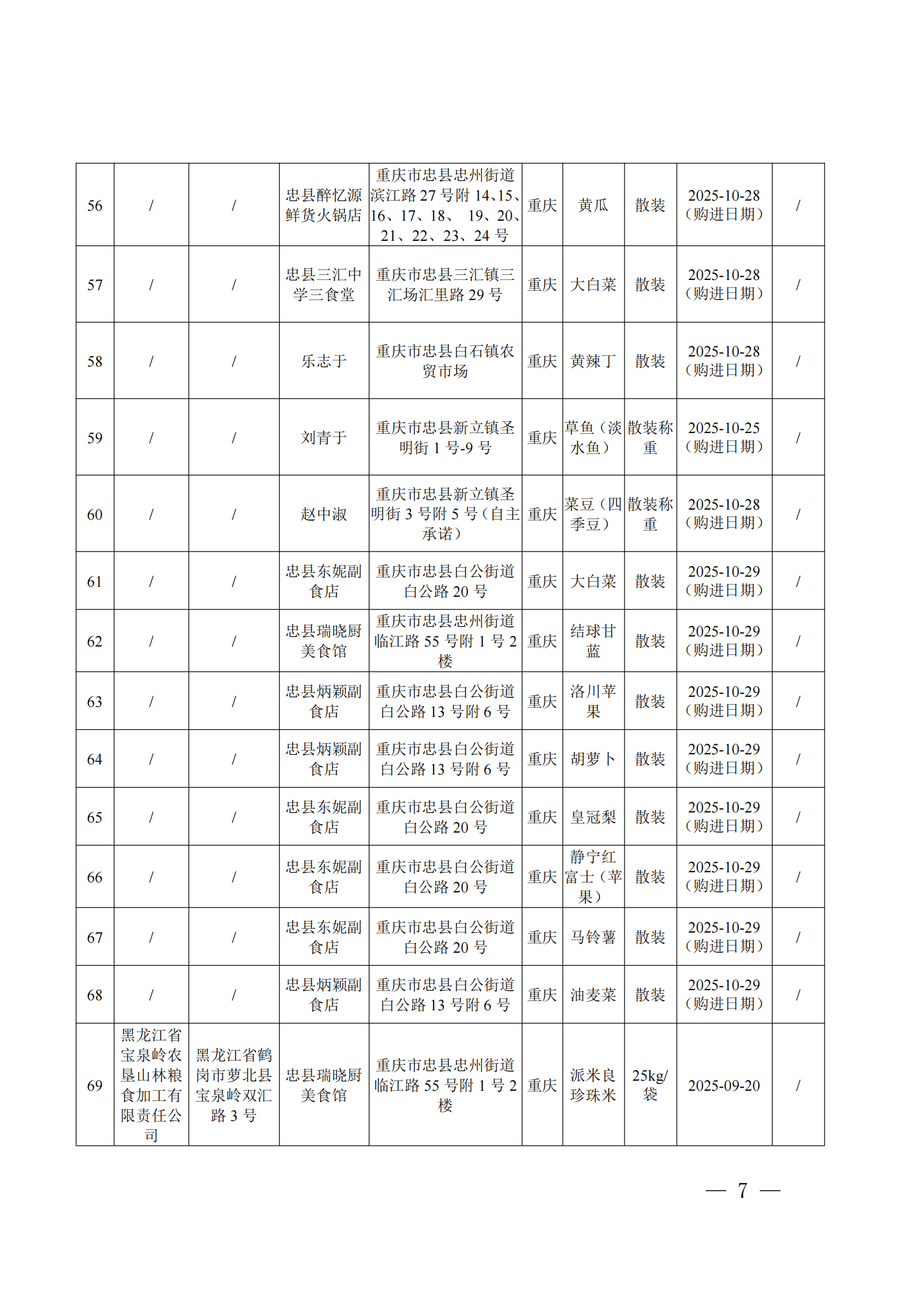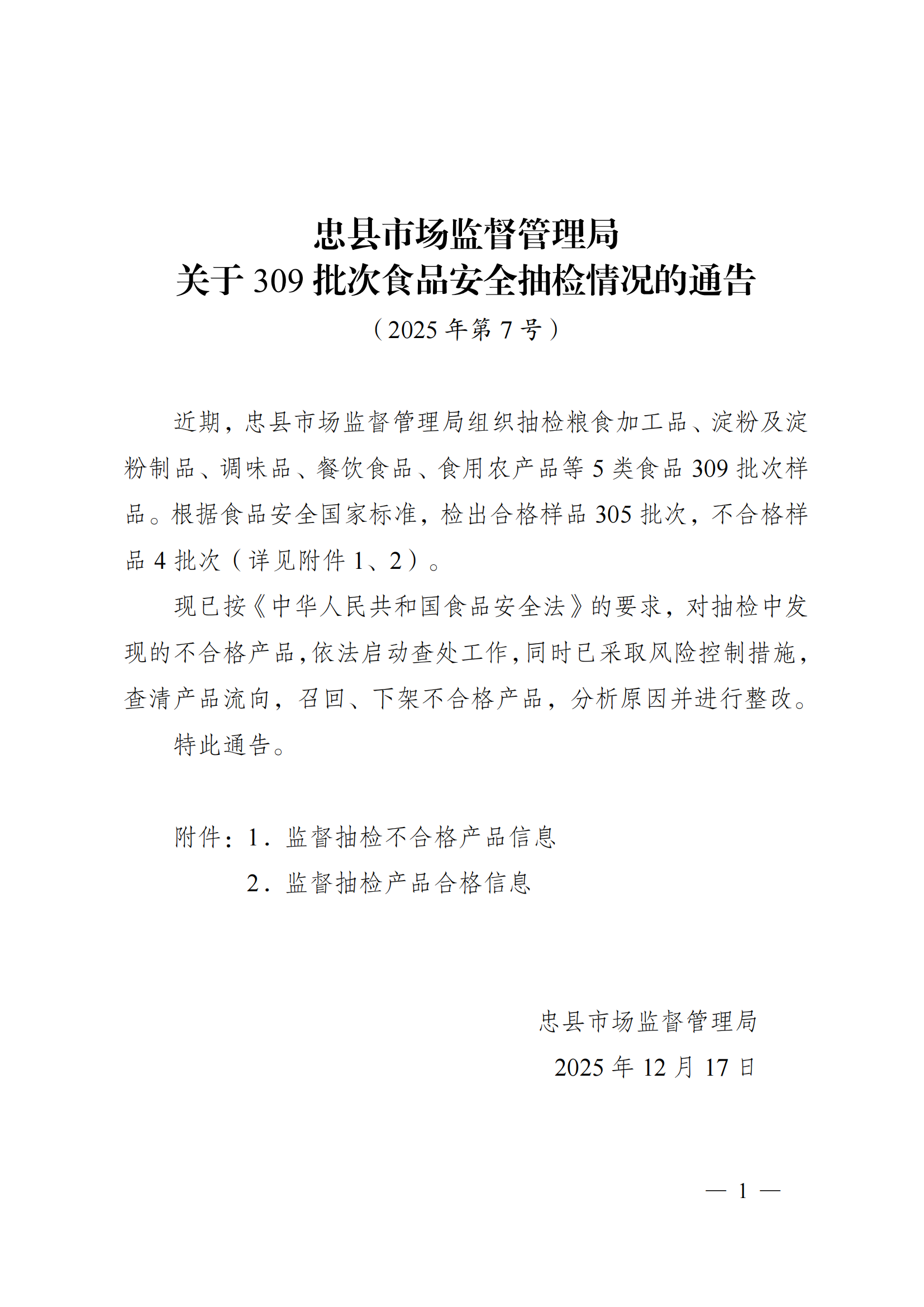 忠市监〔2025〕68号 忠县市场监督管理局关于309批次食品安全抽检情况的通告(2025年第7号)