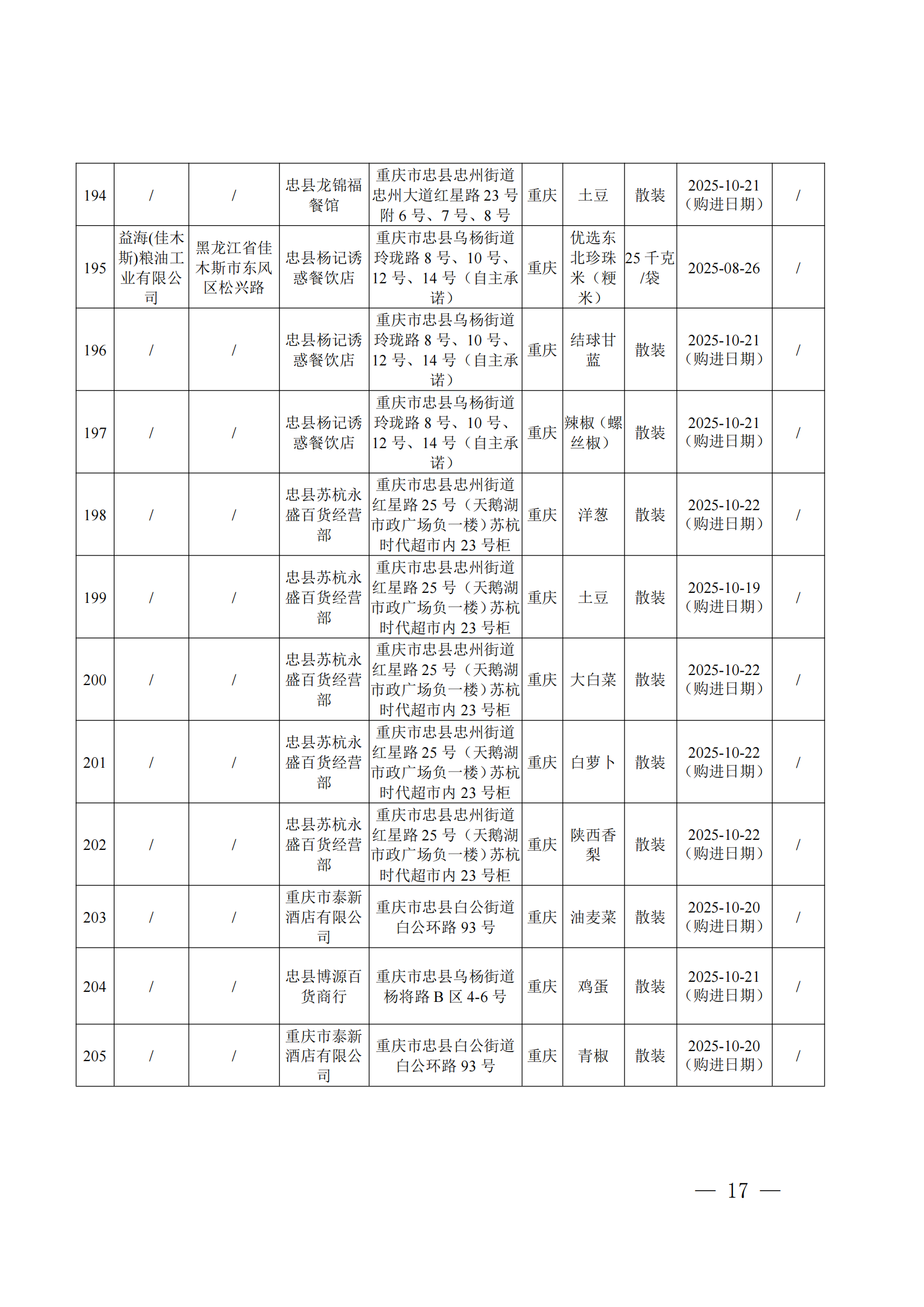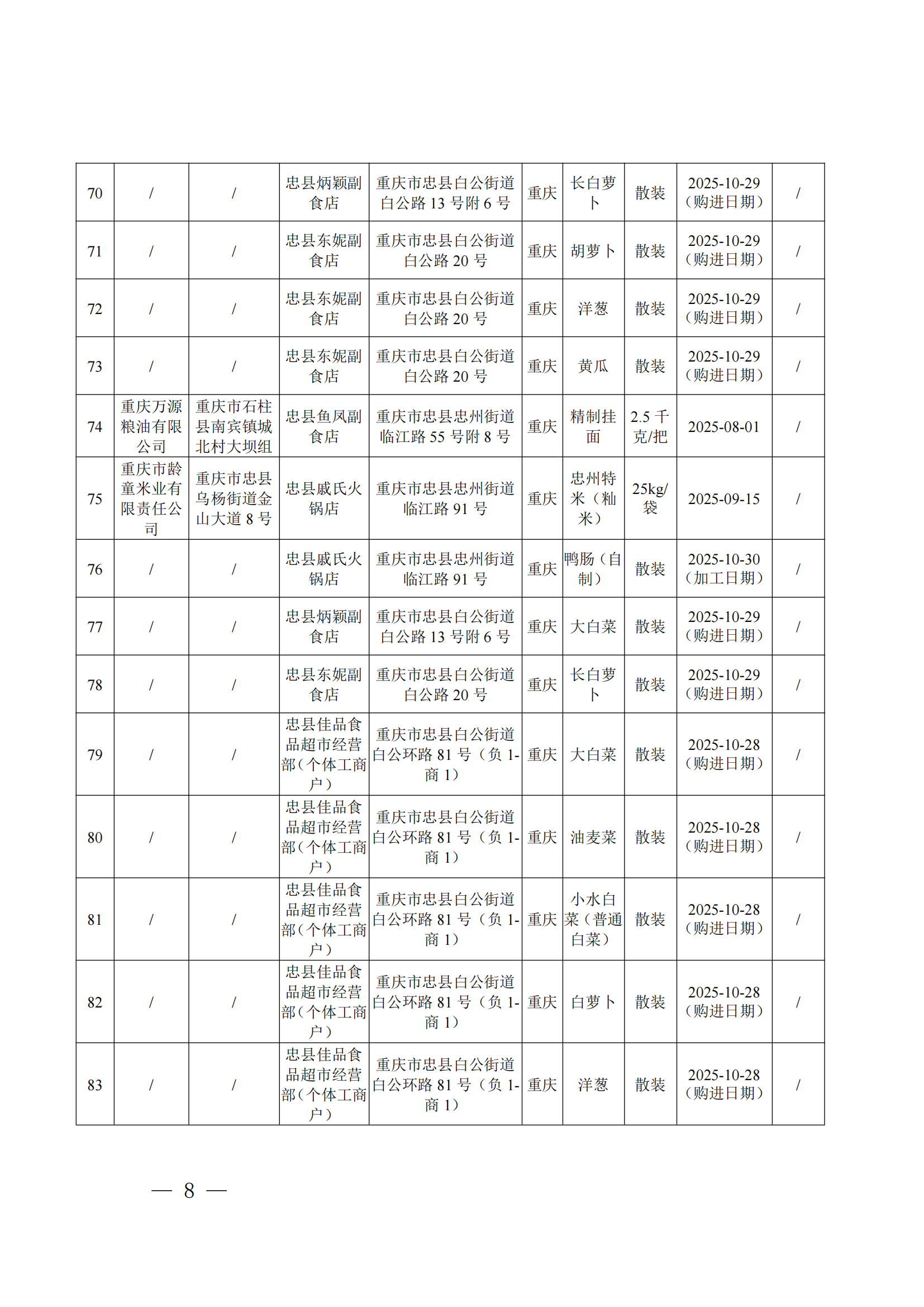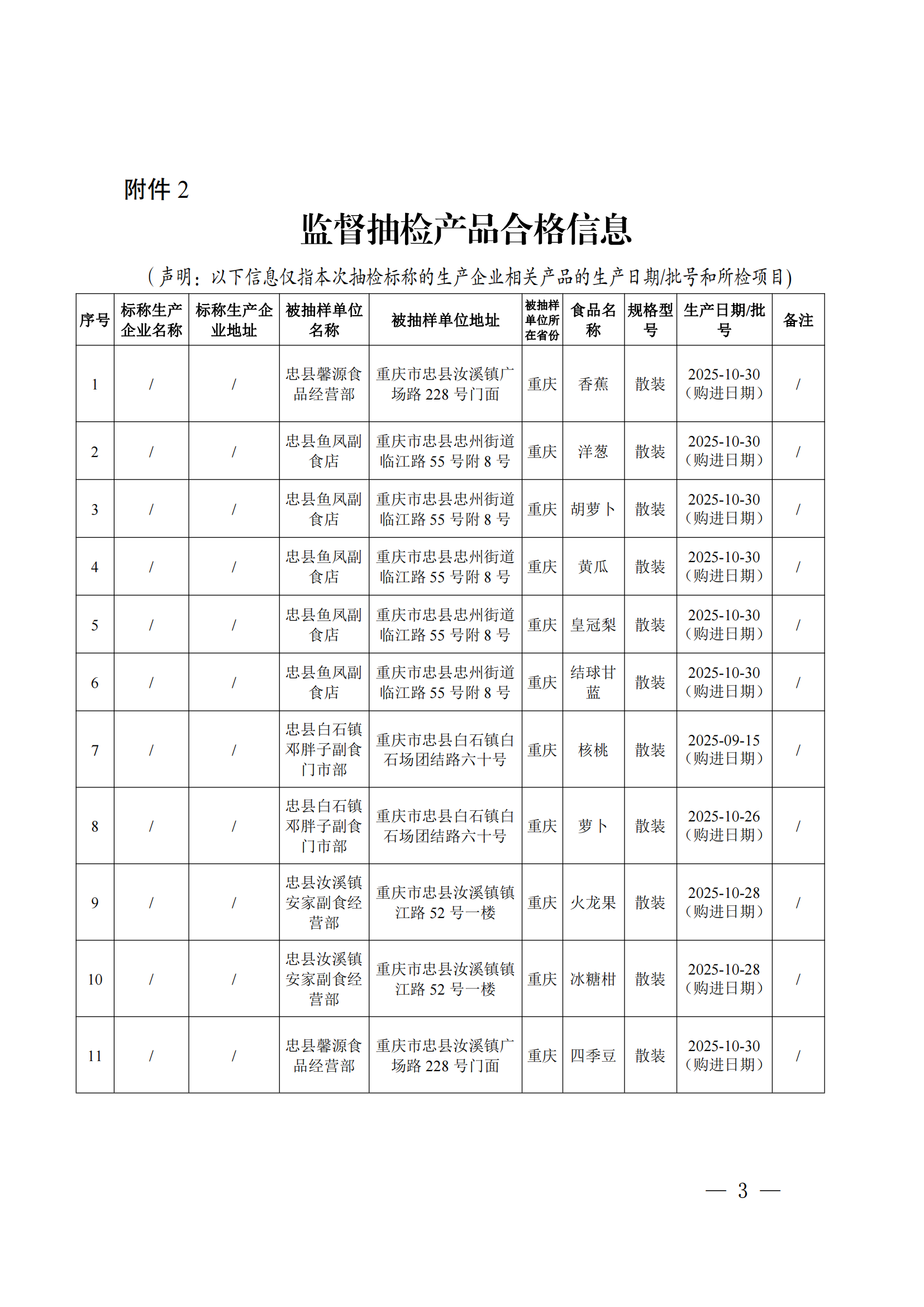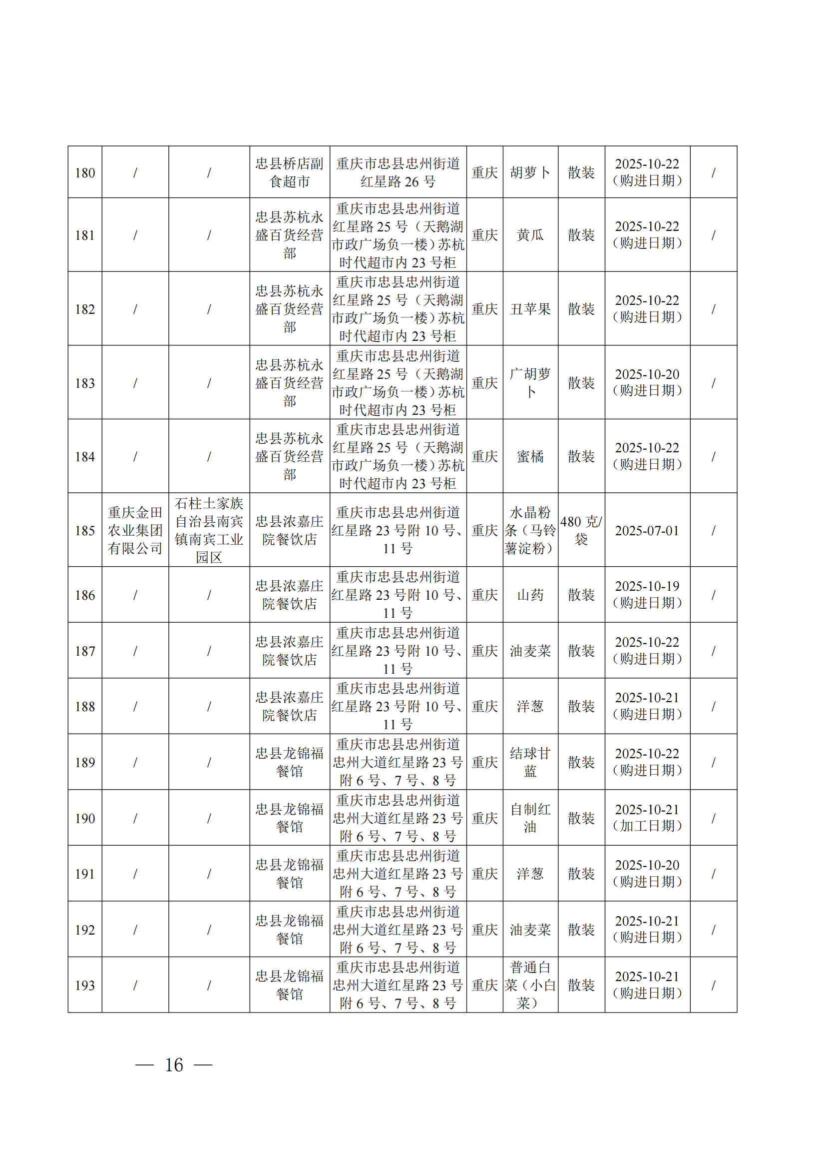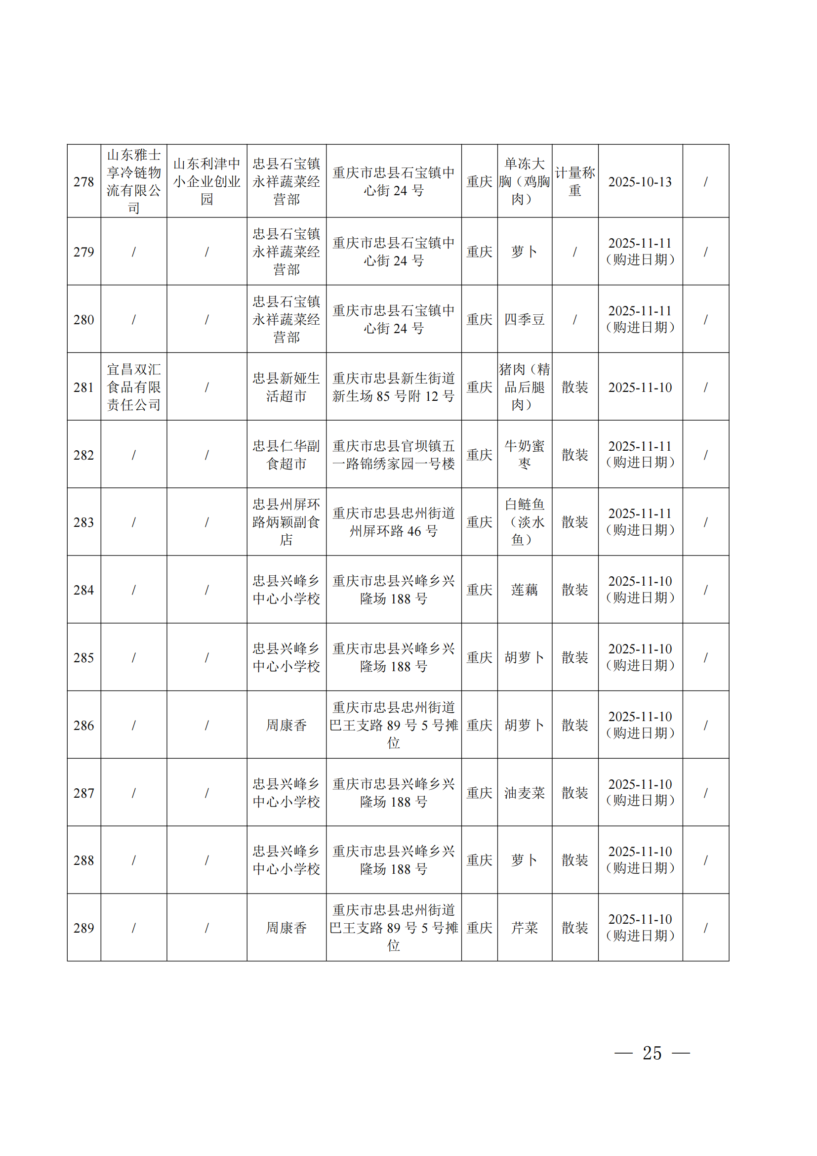 忠市监〔2025〕68号 忠县市场监督管理局关于309批次食品安全抽检情况的通告(2025年第7号)