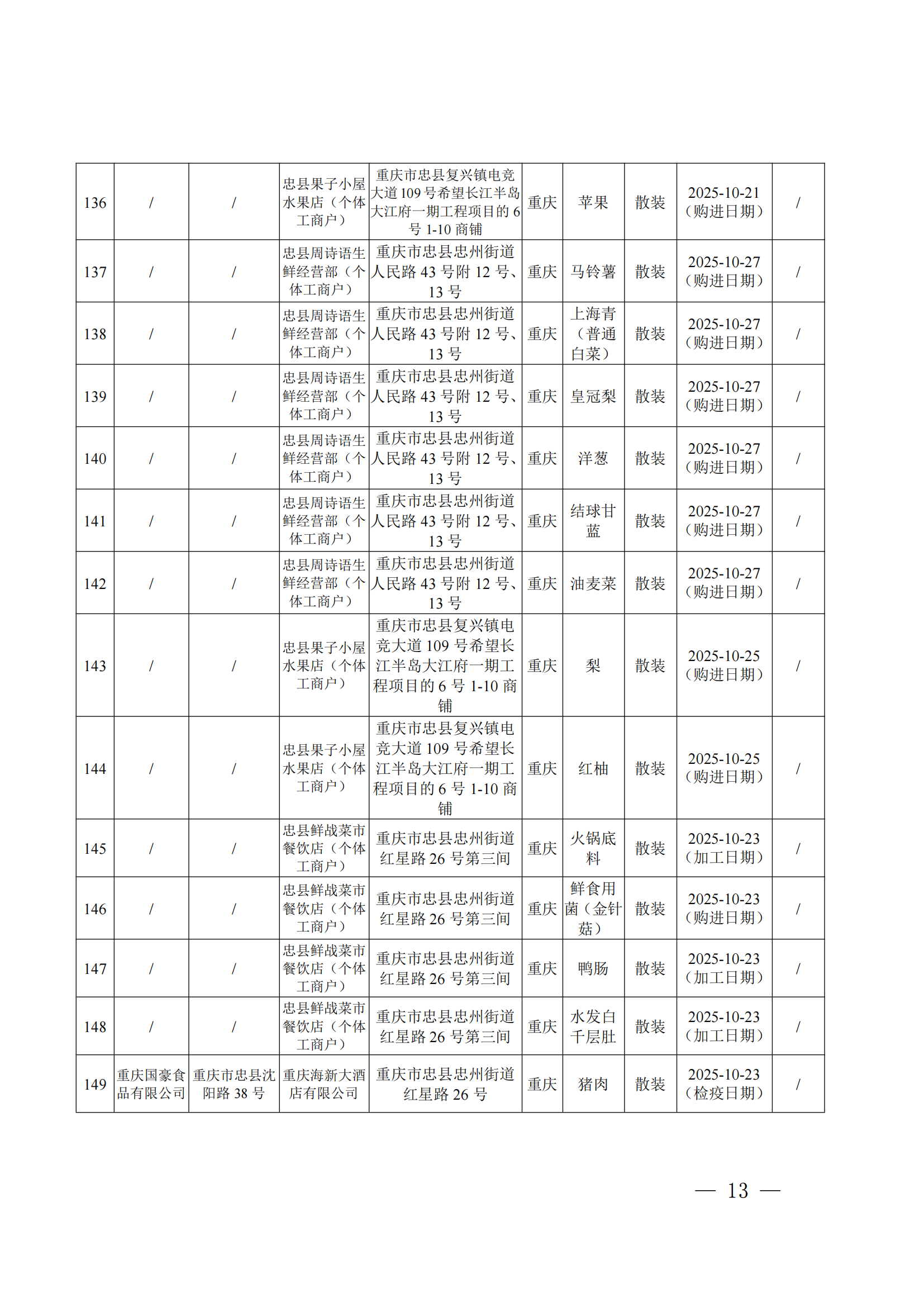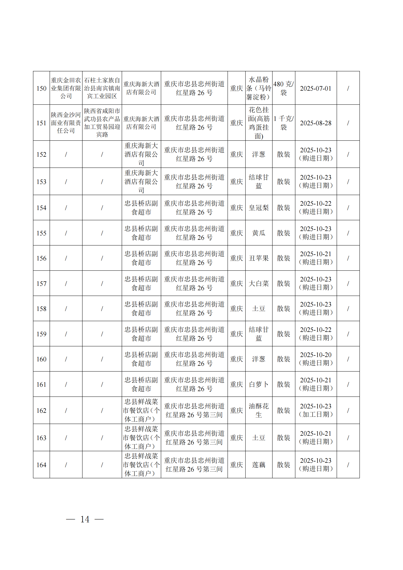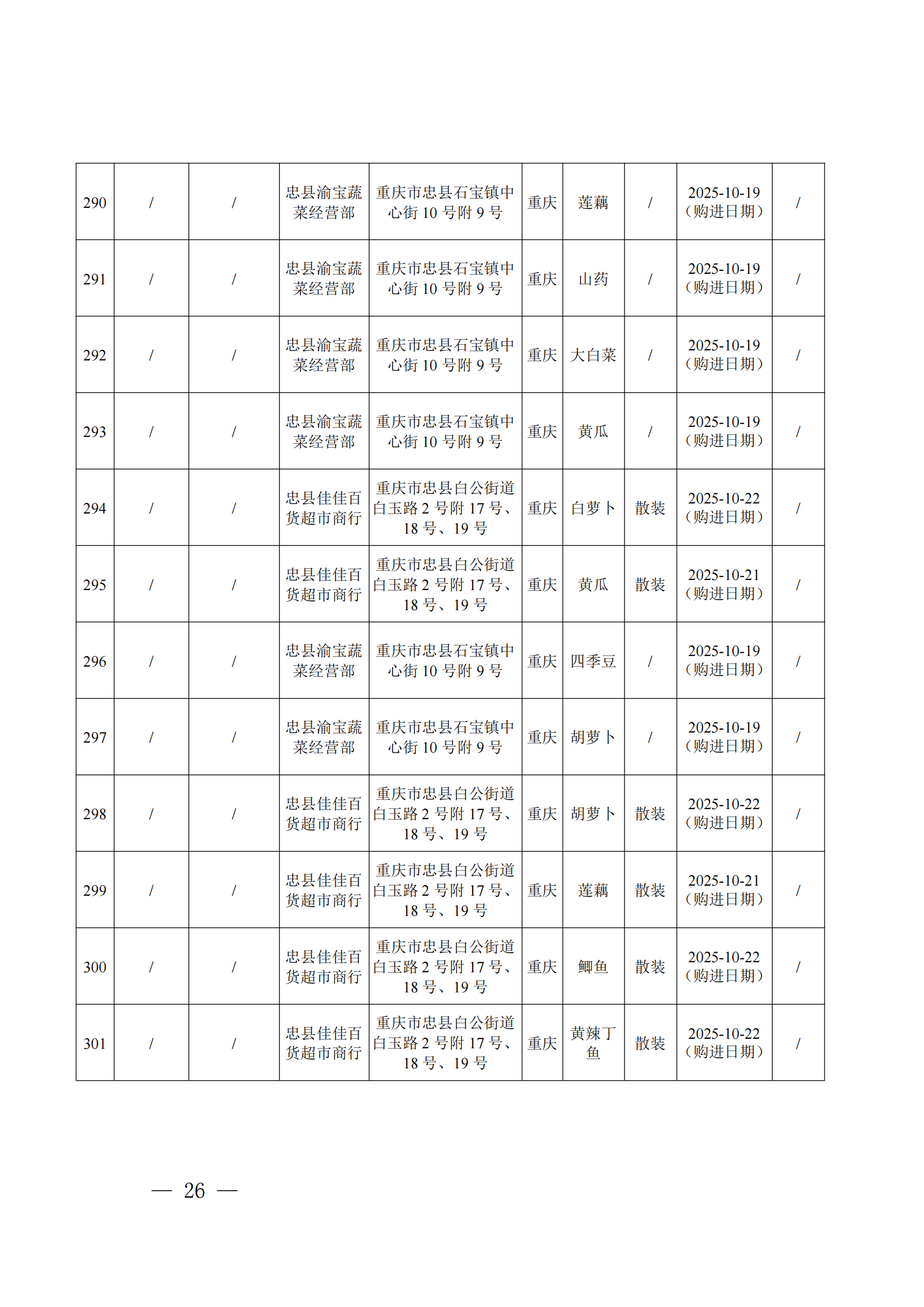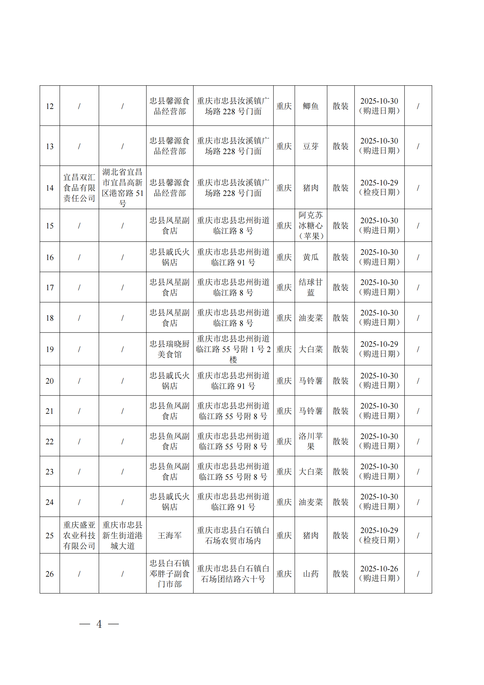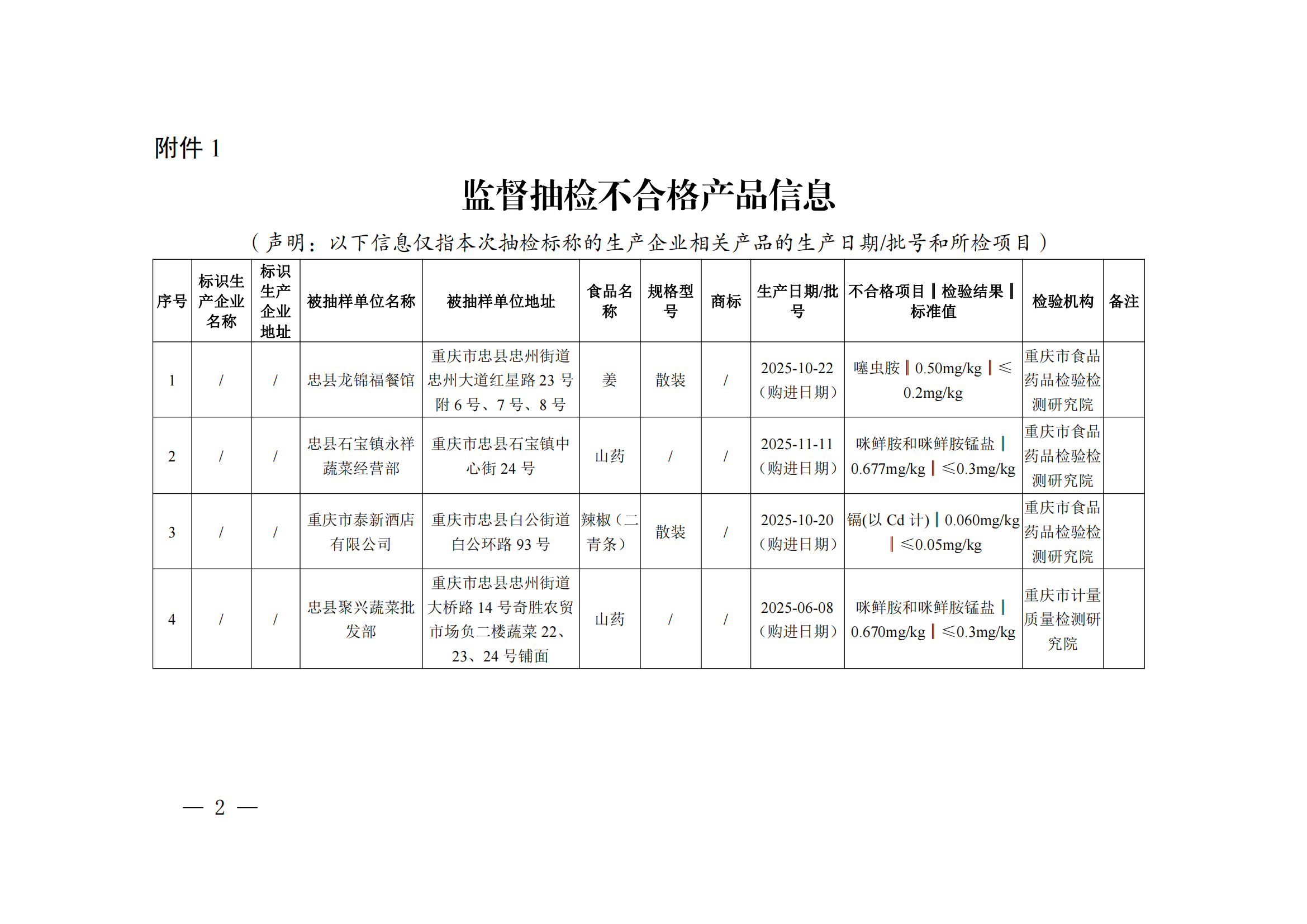 忠市监〔2025〕68号 忠县市场监督管理局关于309批次食品安全抽检情况的通告(2025年第7号)