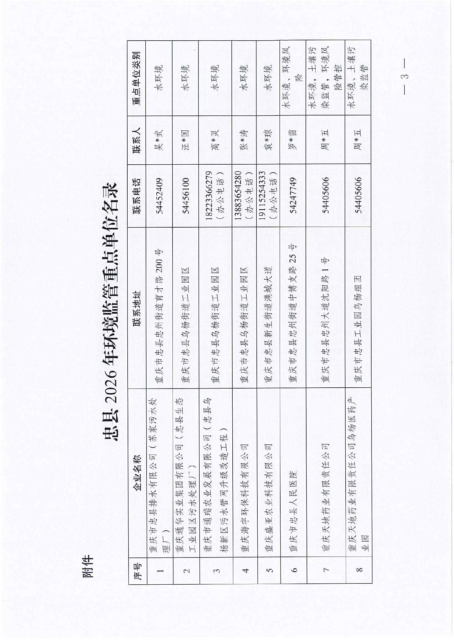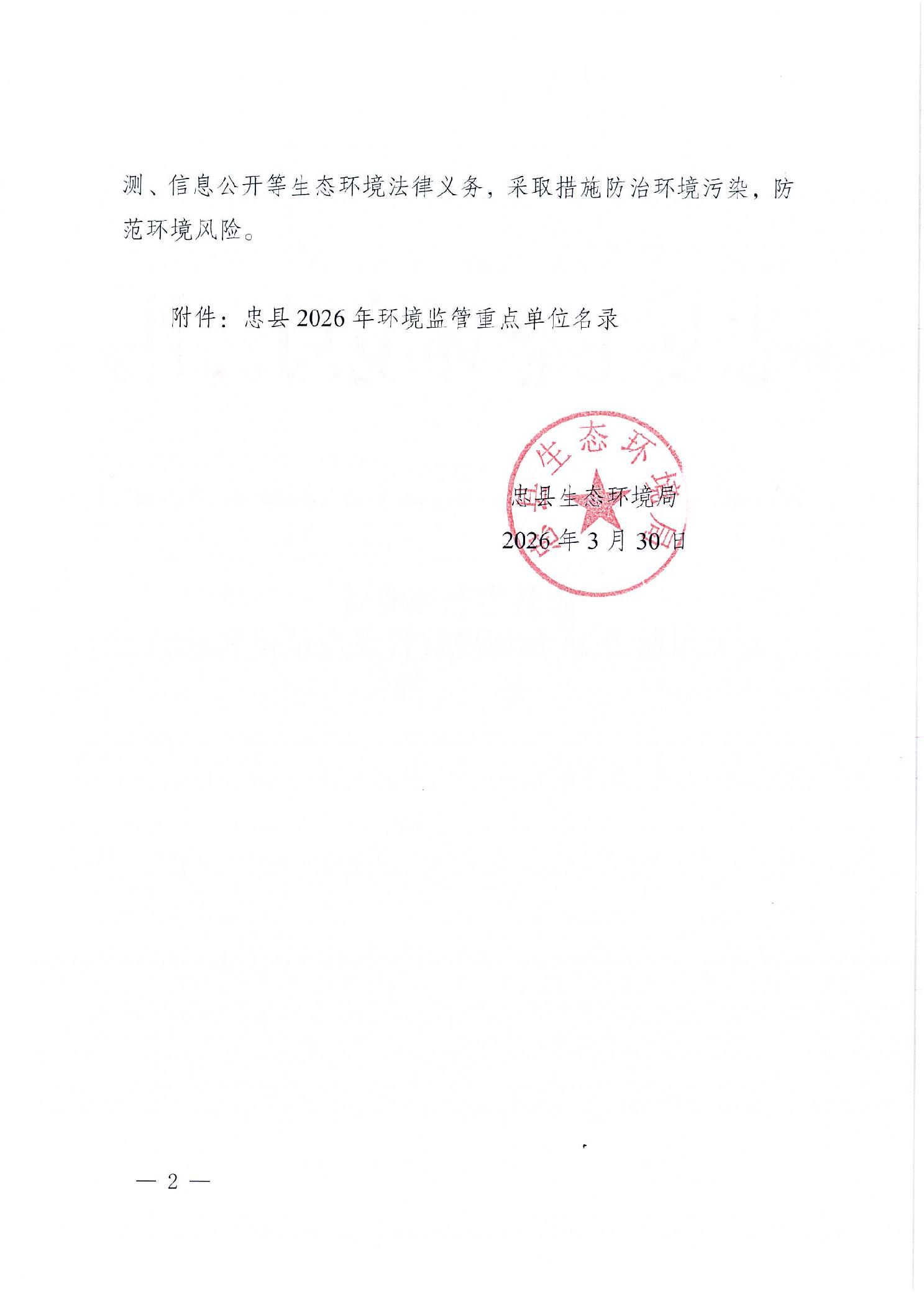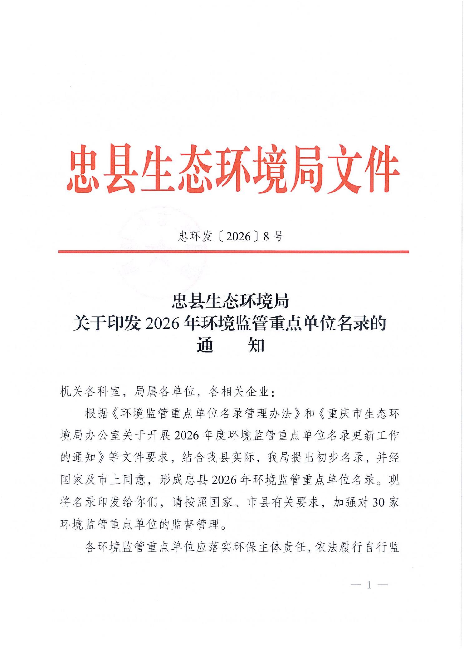 忠县生态环境局关于印发2026年环境监管重点单位名录的通知