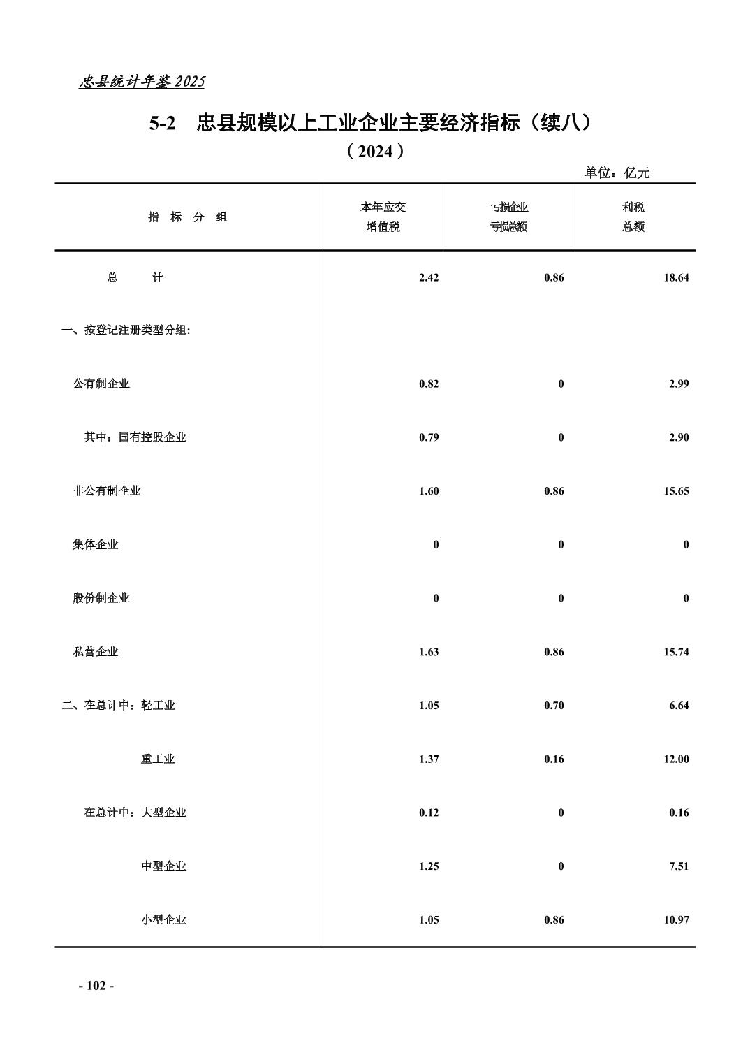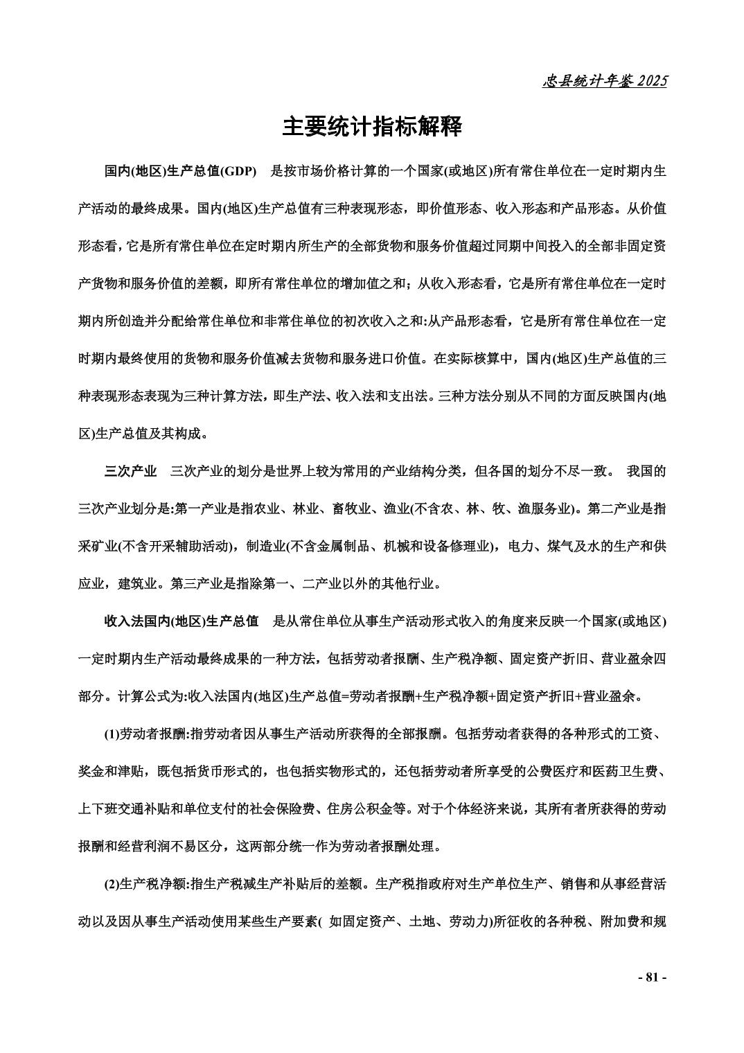 忠县2025年统计年鉴
