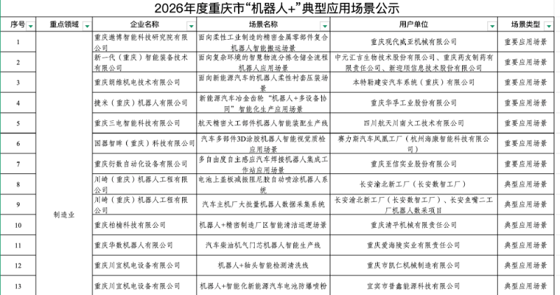 重庆公示29个“机器人+”典型应用场景 智能机器人参与公共服务成亮点