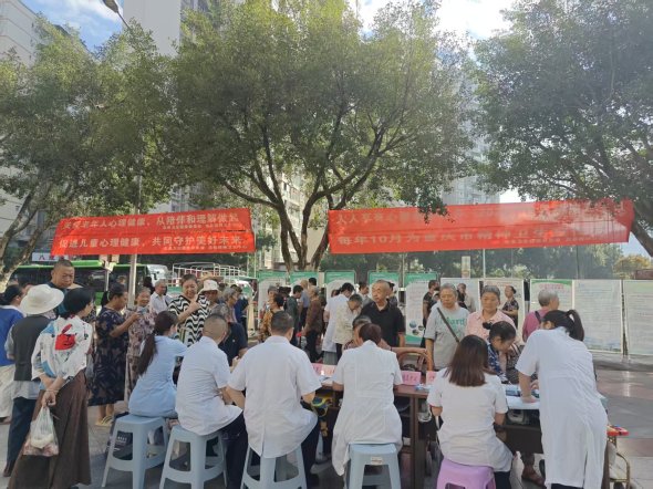 活动现场,通过悬挂宣传横幅、设立心理咨询台、发放宣传资料等形式,为群众提供免费心理测评、一对一心理咨询、调节情绪以及指导精神障碍患者用药康复等服务。本次活动共计悬挂宣传横幅4条、展示宣传展板10张、发放宣传资料1500余份,参与群众约500人。