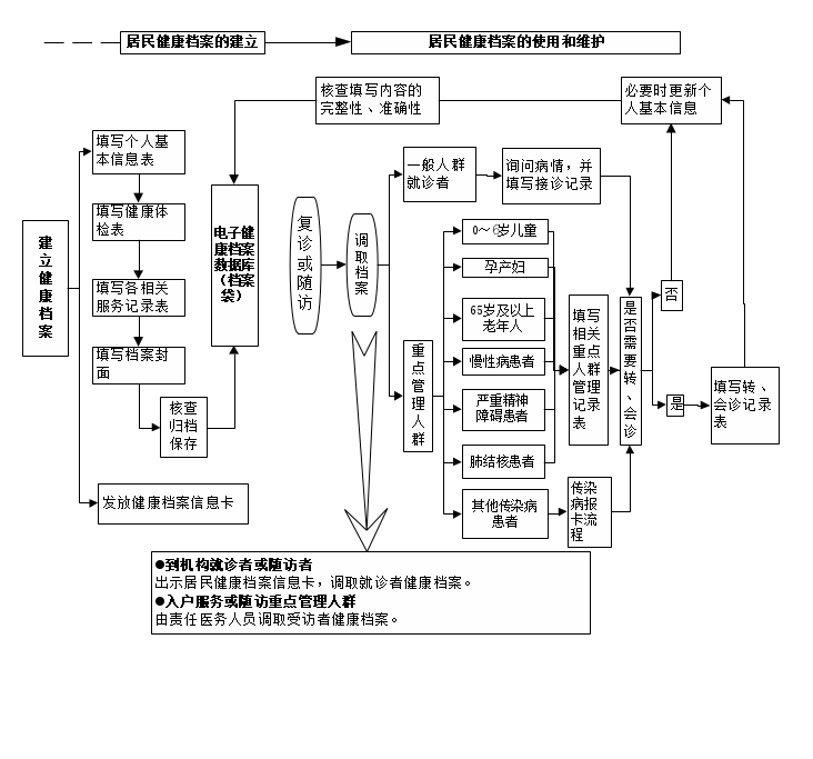 1.已建档居民到乡镇卫生院、村卫生室、社区卫生服务中心(站)复诊时,在调取其健康档案后,由接诊医生根据复诊情况,及时更新、补充相应记录内容。