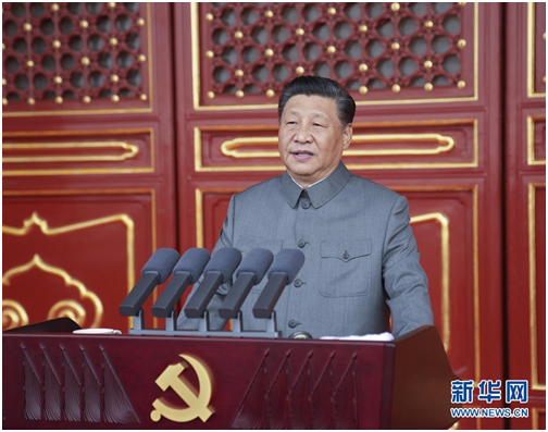 7月1日上午,庆祝中国共产党成立100周年大会在北京天安门广场隆重举行。中共中央总书记、国家主席、中央军委主席习近平发表重要讲话。新华社记者 李学仁 摄
