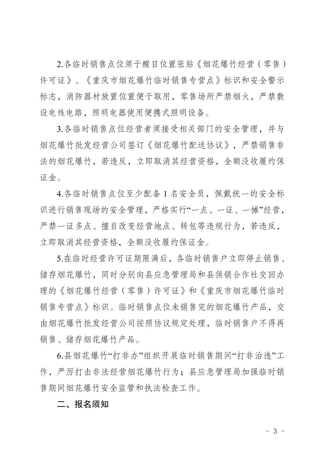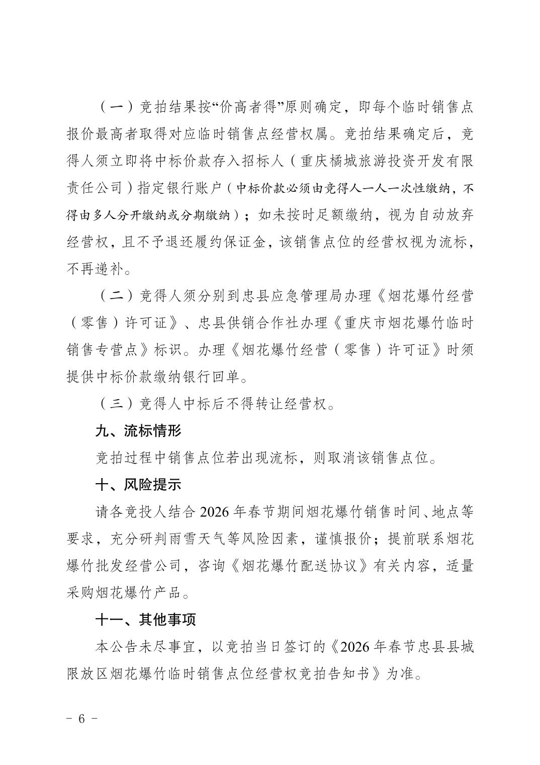 关于2026年春节期间忠县县城限放区烟花爆竹临时销售点位经营权竞拍的公告