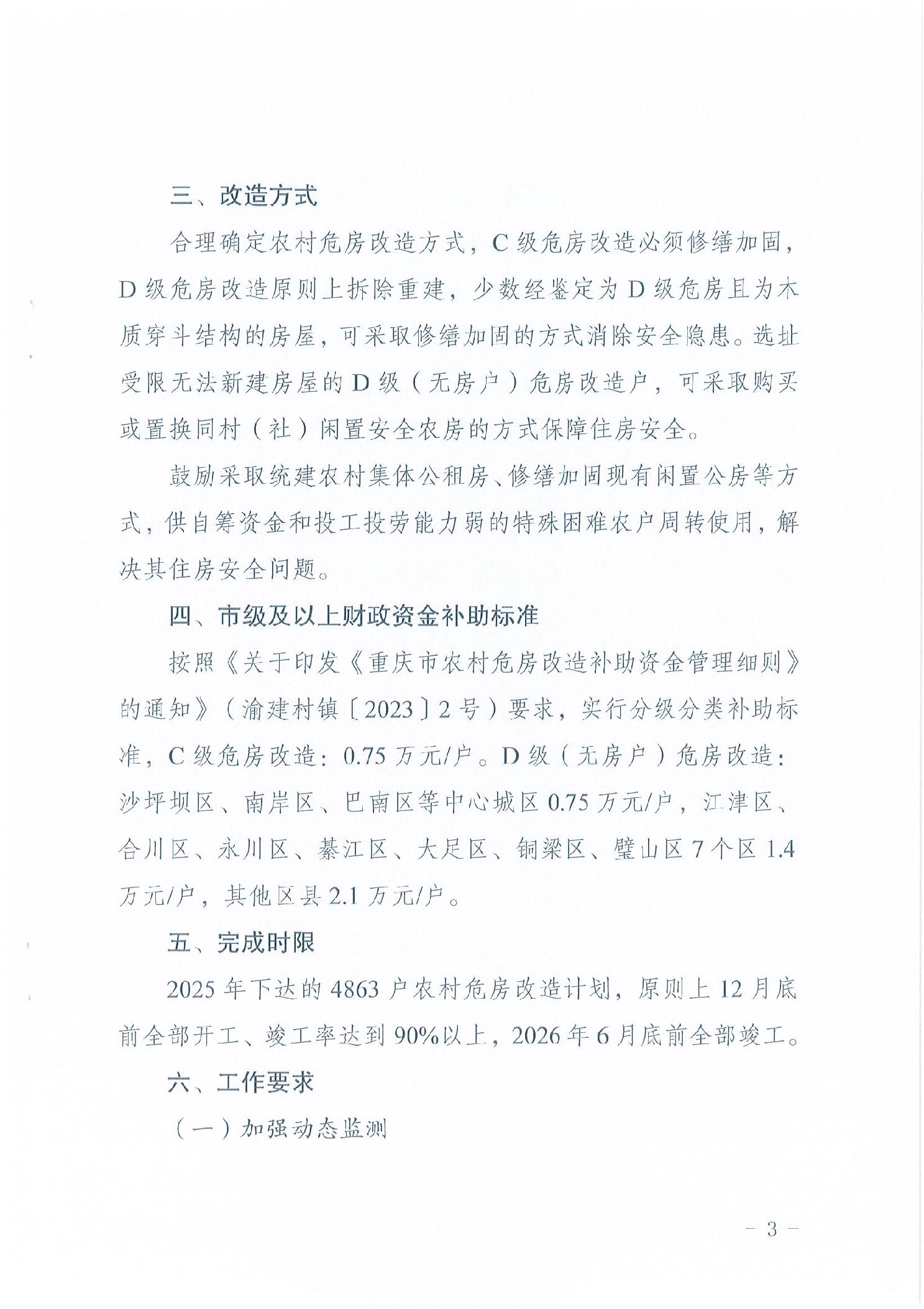 重庆市住房和城乡建设委员会关于印发《重庆市2025年农村危房改造实施方案》的通知