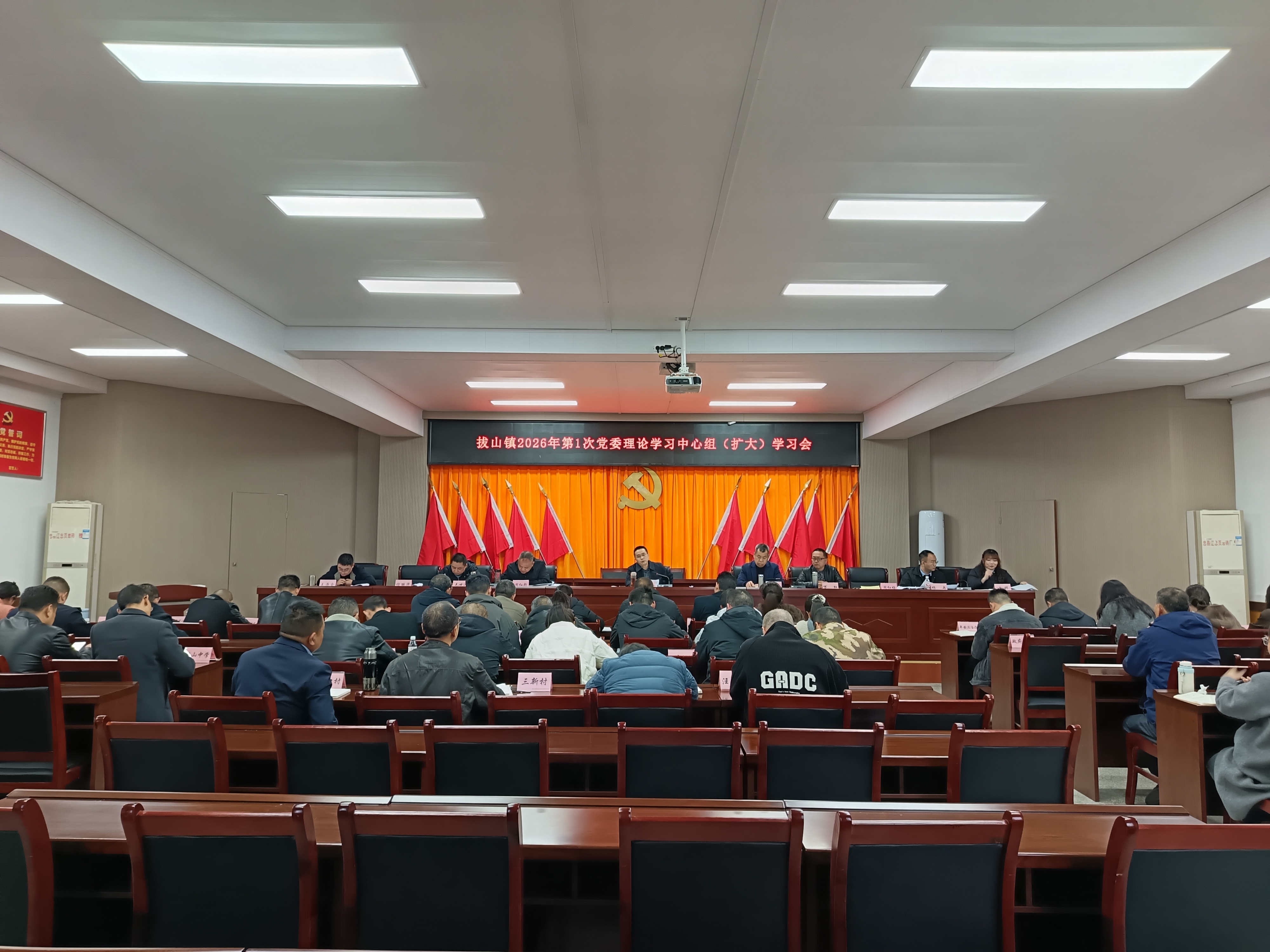 3月23日下午,拔山镇组织召开2026年第1次党委理论学习中心组(扩大)学习会、一季度组织工作例会、一季度安全工作联席会、“以案四说”警示教育会暨重点工作推进会