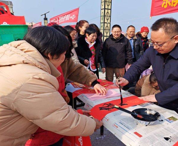 文艺盛宴暖人心,笔墨传情送祝福。当天,与文艺演出同步开展的送春联志愿服务活动同样暖意融融。书法爱好者们现场挥毫泼墨、笔走龙蛇,将马年的美好期许与新春的诚挚祝福凝于笔端,一幅幅字迹工整、寓意吉祥的春联,一个个喜庆红火、饱含温情的“福”字跃然纸上。志愿者们将写好的春联和“福”字逐一送到居民手中,送上最真挚的新春问候,让墨香浸润民心,让暖意传递万家。