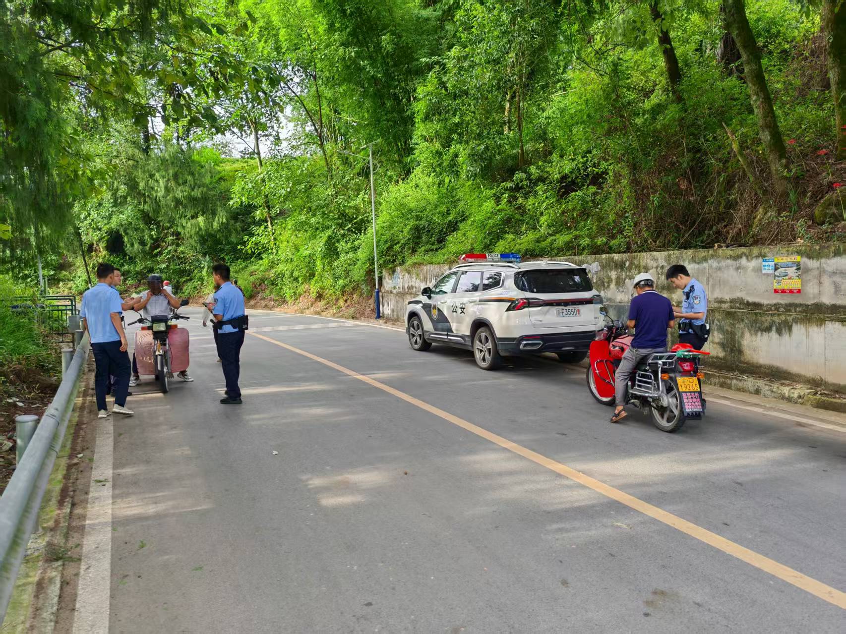 为维护辖区道路交通安全,官坝镇坚持“查违法、除隐患、保畅通”的原则,在乡村道路开展交通执法检查,对摩托车、机动车等进行细致排查,利用现场宣讲、案例警示等方式,普及道路交通安全法规,切实筑牢道路交通安全防线。