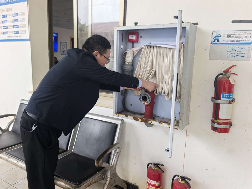 郭文龙一行深入食堂后厨排查用火用气、食材安全隐患,在公共区域核查消防栓、灭火器等设施维护情况,抽查工作人员应急操作技能,对发现的问题当场提出整改要求、限期落实。