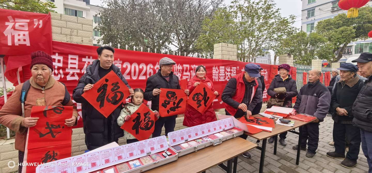 2026年2月5日我镇开展“骏马迎春·翰墨送福”文化进万家活动,把浓浓年味和新春祝福送到乡亲们家门口。活动现场红纸铺展、墨香四溢,马年特色春联、大红福字跃然纸上,一笔一划皆是新春美好期许。乡亲们围站一旁、争相挑选,接过墨迹未干的墨宝,脸上满是欢喜,现场年味十足。
