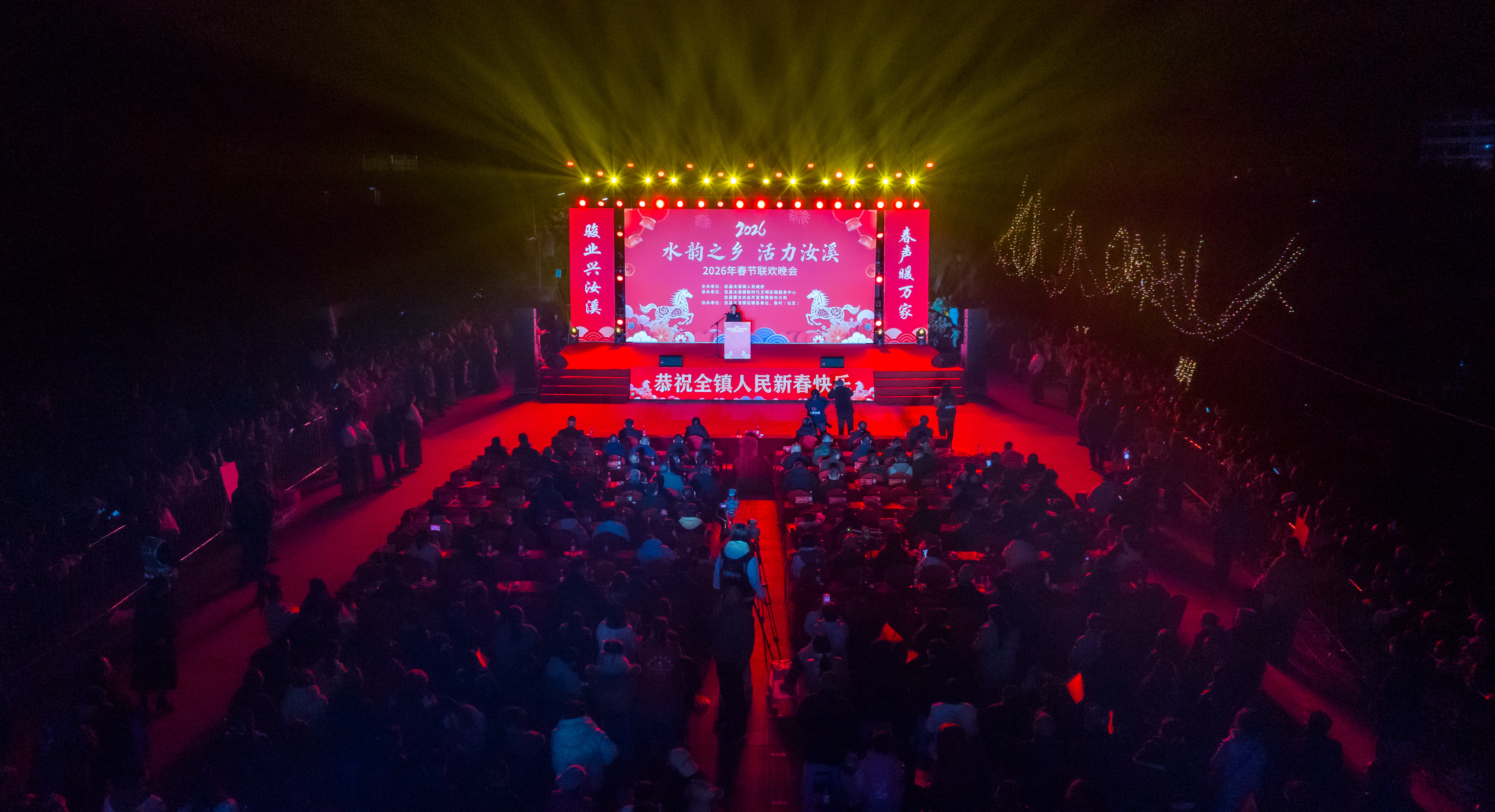 2026年2月12日晚,汝溪镇春节联欢晚会在汝溪河畔健身广场成功举办。晚会汇集小品、歌舞、朗诵等丰富节目,并伴有精彩的烟花表演,吸引了大量群众前往观看。现场气氛热烈祥和,掌声与欢笑声此起彼伏,秩序井然。此次活动生动展现了汝溪的文化特色与群众精神风貌,为全镇广大居民营造了欢乐团圆的节日氛围。