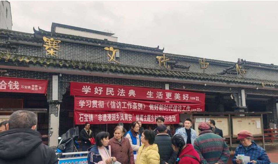 3月17日,石宝镇借助赶集日人流集中优势,将非遗文化与平安建设深度融合,开展禁毒主题乡村普法活动。