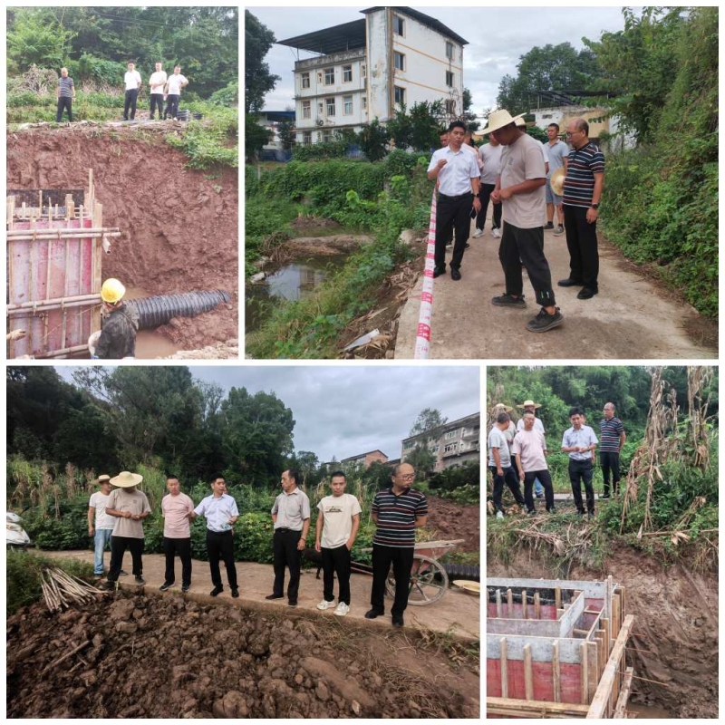 范书记,刘镇长到桂溪社区巡查污水管网修建进度,查看施工质量和施工安全
