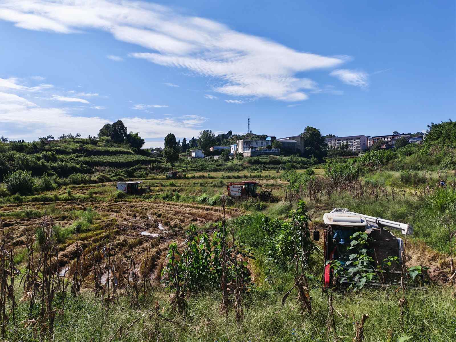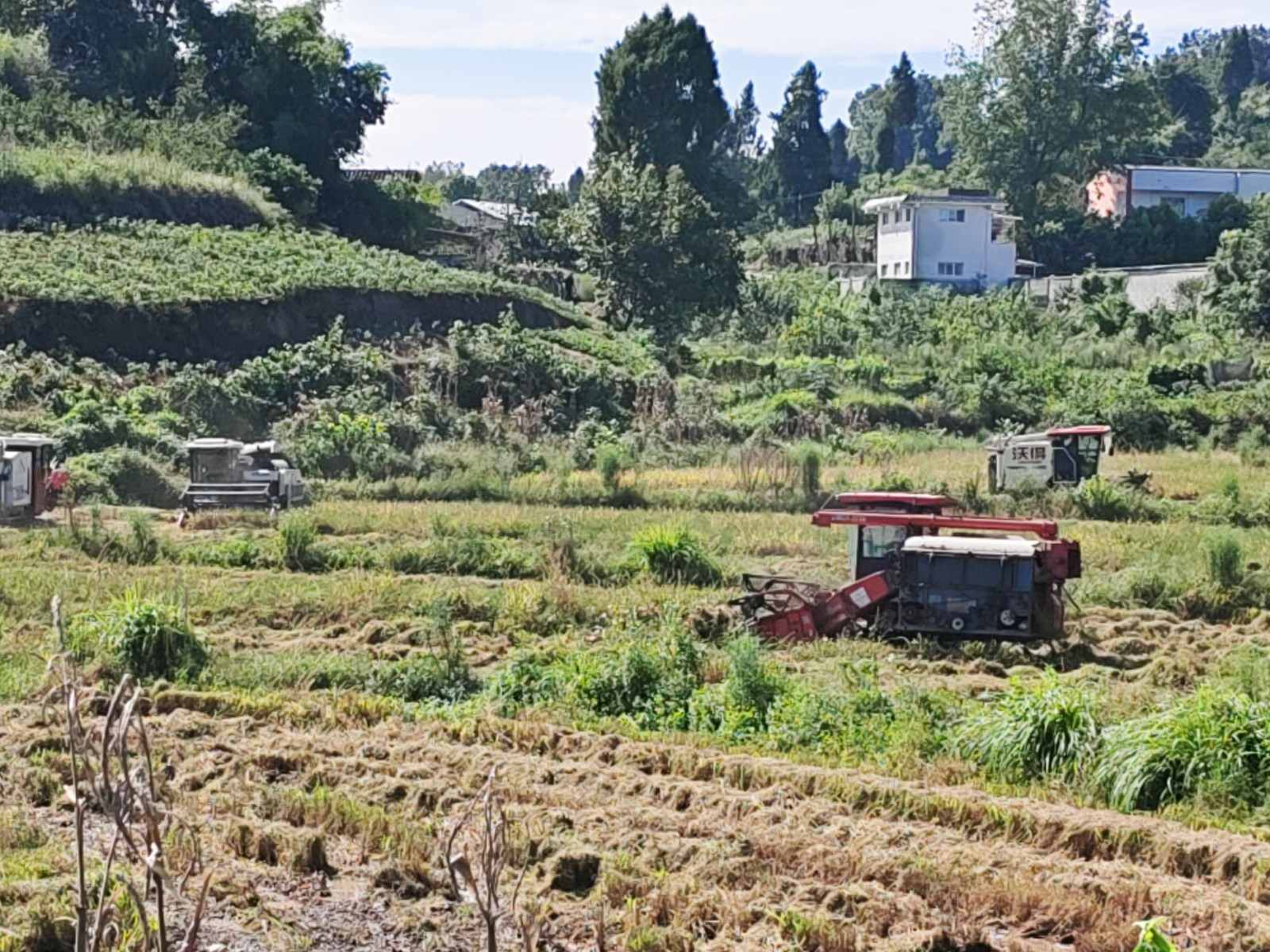 在新立镇中岭社区的稻田里,金黄稻穗压弯枝头,4台中型联合收割机穿梭其间,一气呵成完成割稻、脱粒、卸谷工序,田间呈现出热火朝天的丰收图景。 为高效推进秋收,新立镇强村公司统筹县内外资源,组织20余台联合收割机,对全镇上万亩优质稻开展规模化机械化作业,机械化作业面积达90%。同时,专门成立机收应急保障服务队,深入田间地头解决机械故障、地块协调等问题,全力保障收割工作顺利推进。