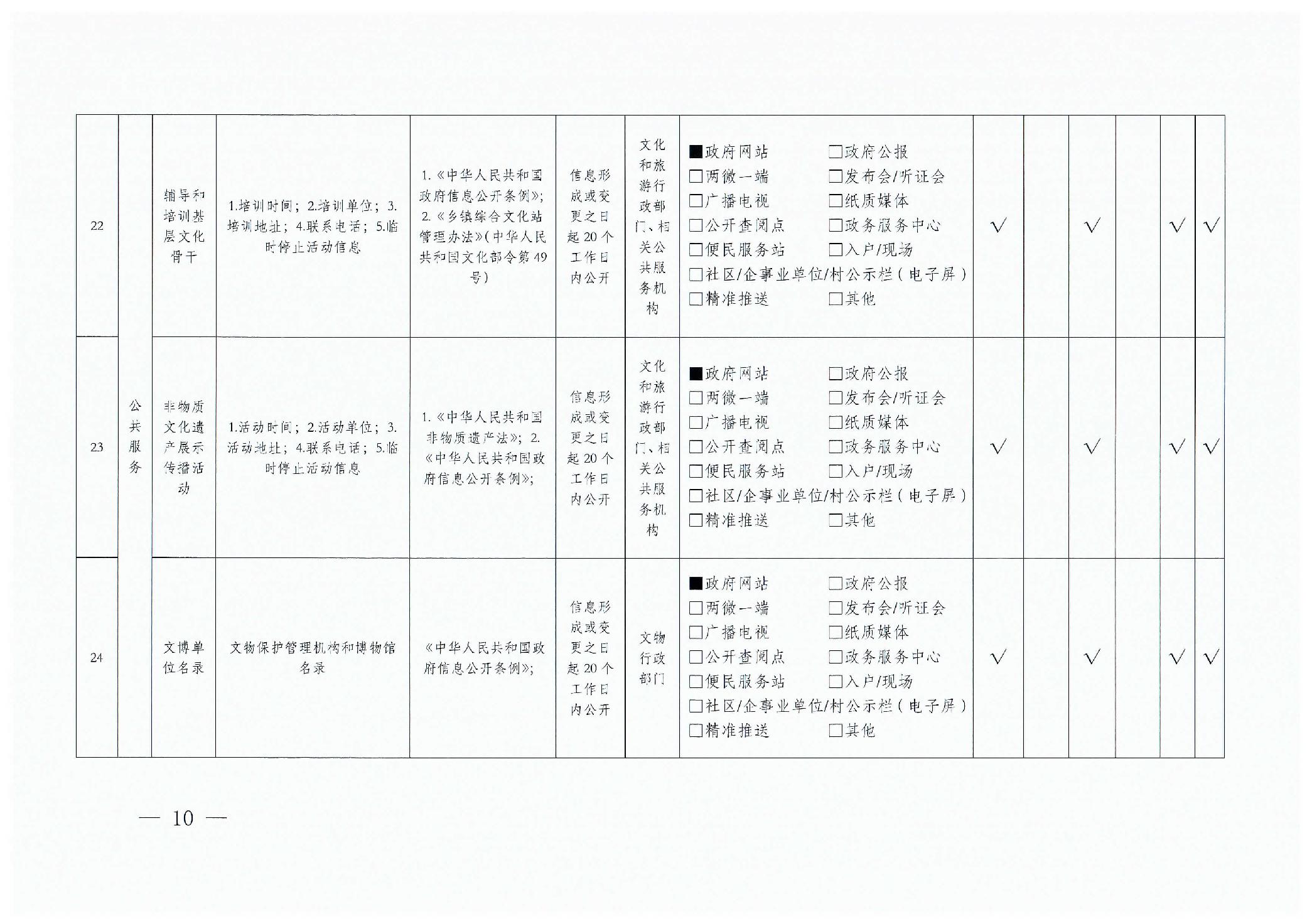 忠县永丰镇公共文化服务领域基层政务公开标准目录