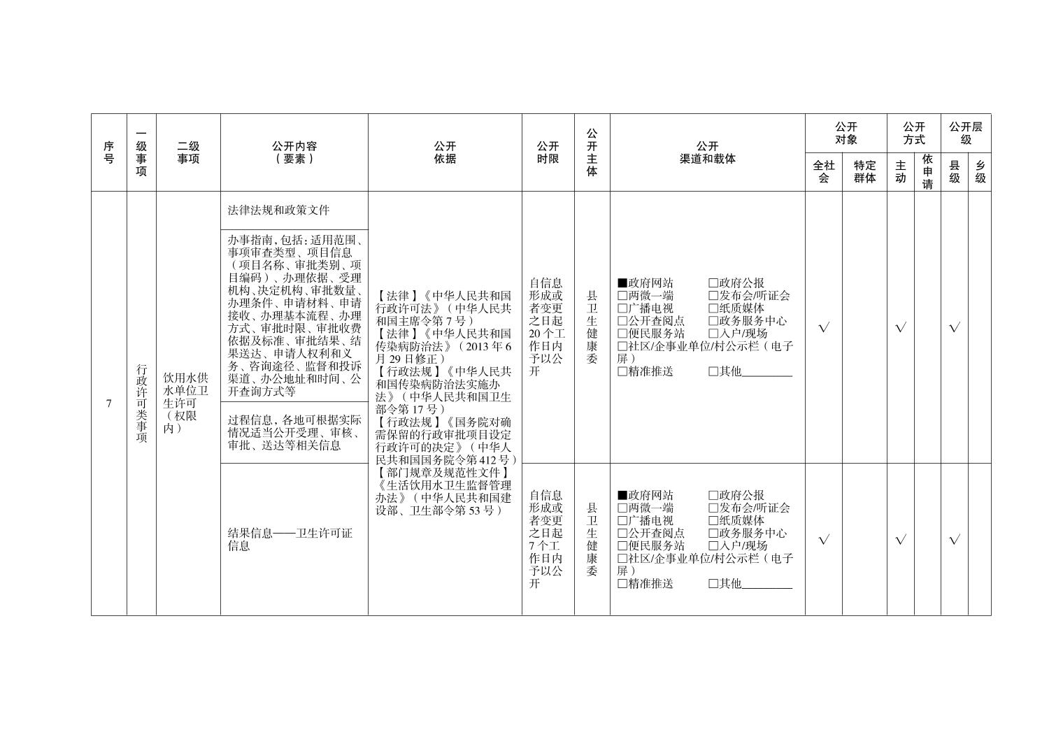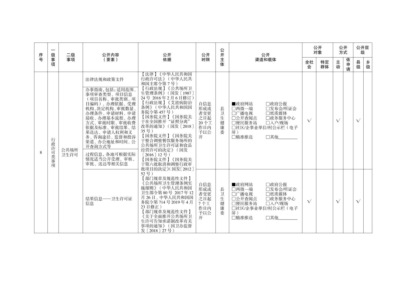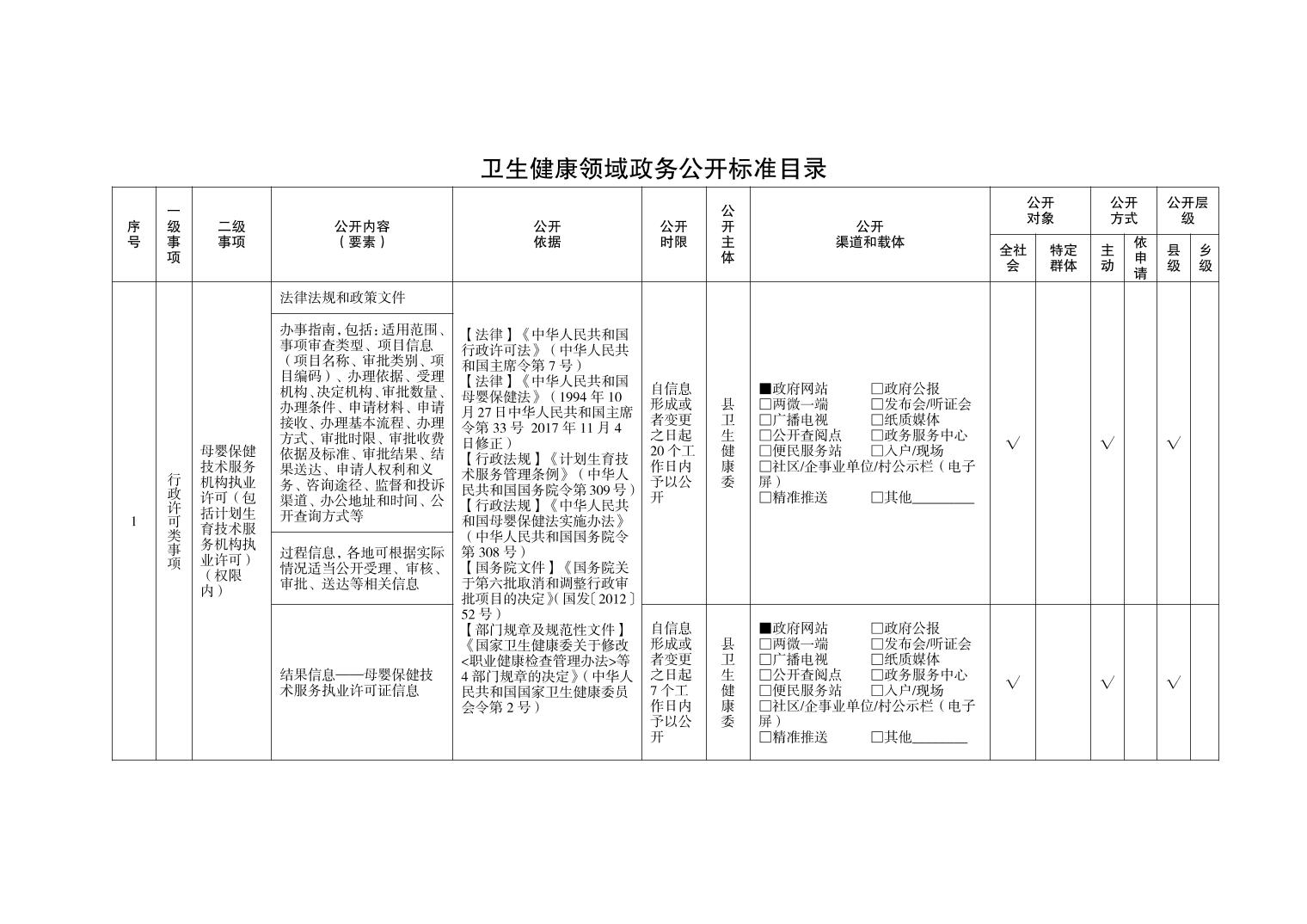 忠县永丰镇卫生健康领域基层政务公开标准目录