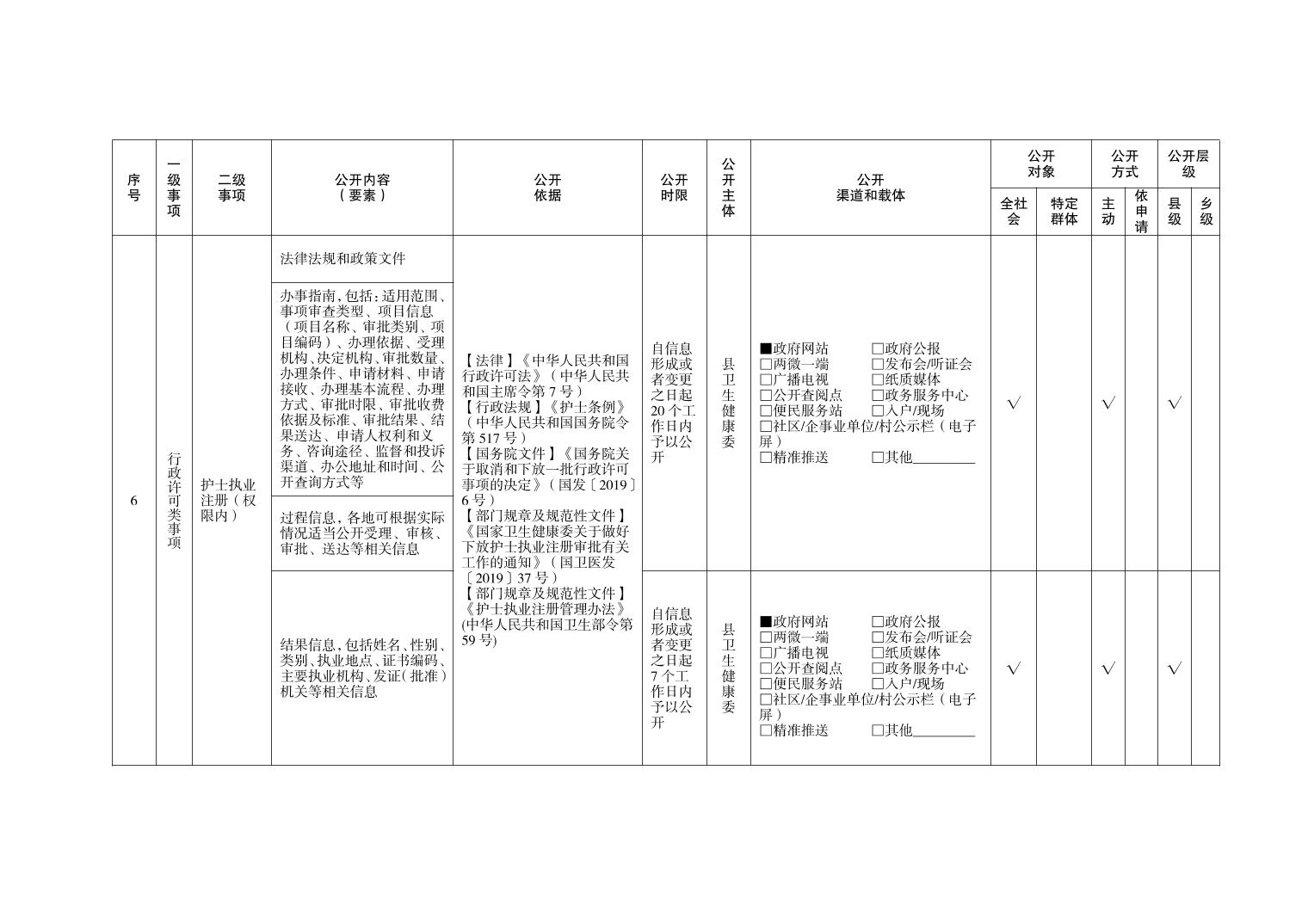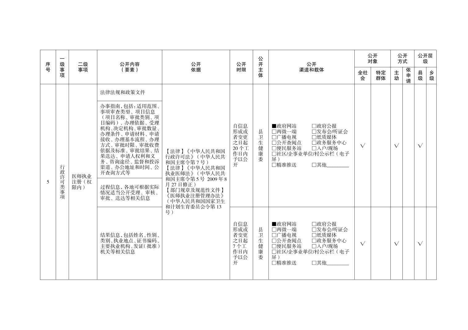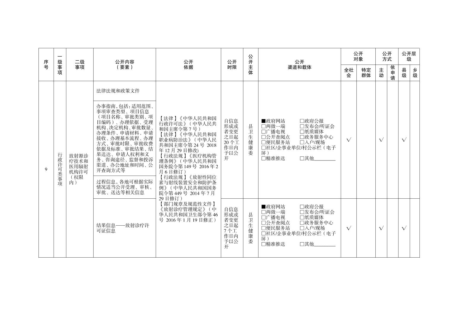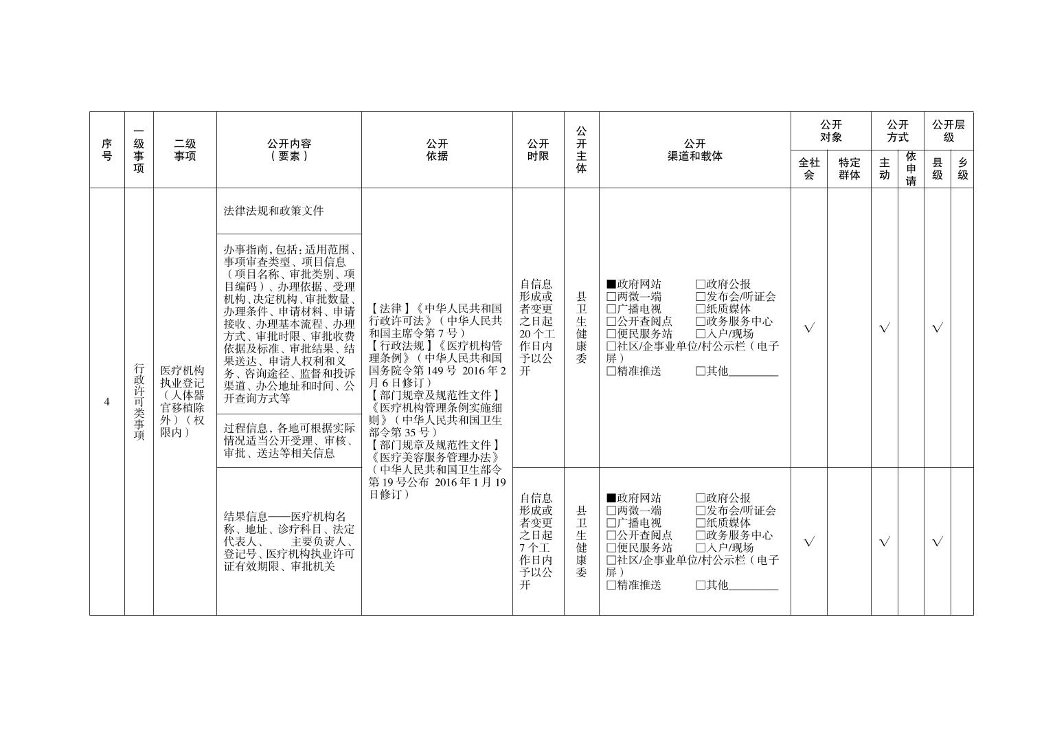 忠县永丰镇卫生健康领域基层政务公开标准目录