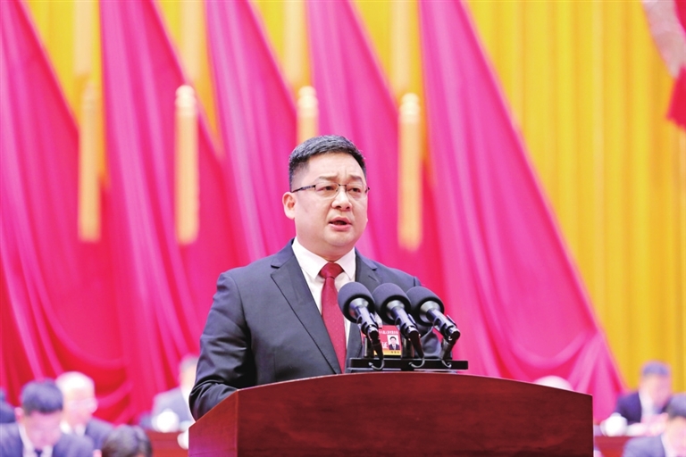 徐海波代表县人民政府作政府工作报告。报告分四个部分:“十四五”时期及2025年工作回顾;“十五五”时期总体目标和二〇三五年远景目标;2026年主要任务;全面加强政府自身建设。