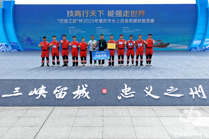 10月16日,为期4天的“巴渝工匠杯”2025年重庆市水上应急救援技能竞赛在忠义广场落下帷幕。市港航海事事务中心党委委员、副主任阳斌宣布竞赛闭幕,副县长成波出席。