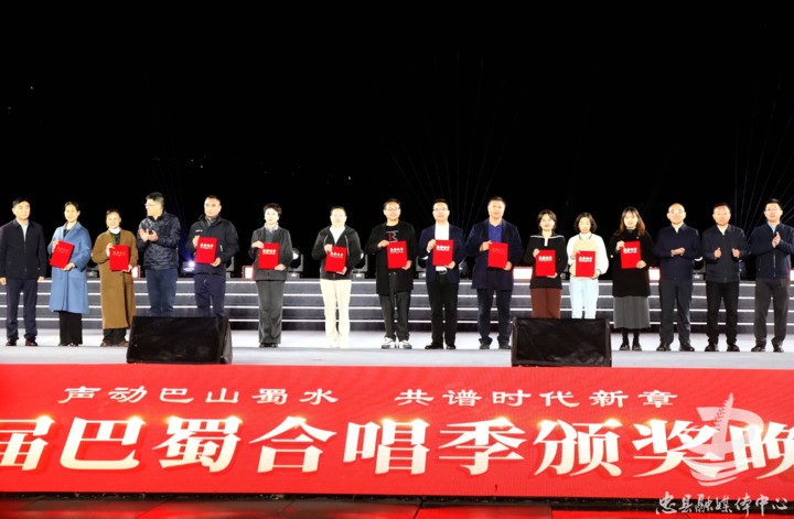 经过专业评委严格评判,四川省宜宾市文化馆和美合唱团、重庆市忠县忠爱女声合唱团、四川省攀枝花市文化馆合唱团、重庆市渝中区文化馆鸿恩合唱团获得一等奖,重庆市石柱县文化馆和雅之声教师合唱团、四川省广安市文化馆岳池三尺合唱团、四川省泸州市文化馆青年女子合唱团、重庆市垫江县教师合唱团、重庆市娇阿依苗音合唱团、四川省德阳市文化馆百合男声合唱团获得二等奖,四川省绵阳市安州区源爱教师合唱团、四川省雅安市老年大学合唱团、重庆万州区教师合唱团、重庆市忠县忠州第二小学校彩贝童声合唱团等11支团队获得三等奖。当晚,颁奖晚会在忠义广场举行,现场领导分别为获奖团队颁奖,举行了巴蜀合唱季会旗交接仪式。舞蹈《大美双城记》《忠魂·不朽》,表演唱《心有所“蜀”》等10多个精彩节目轮番上演,赢得现场观众的阵阵掌声和喝彩声。