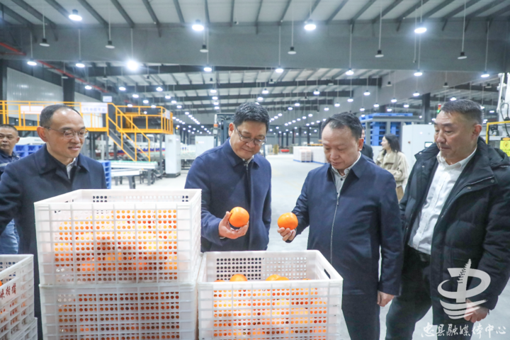 廖红军(右二)一行在重庆三峡柑橘集团忠县果业有限公司调研。记者 田华平 摄