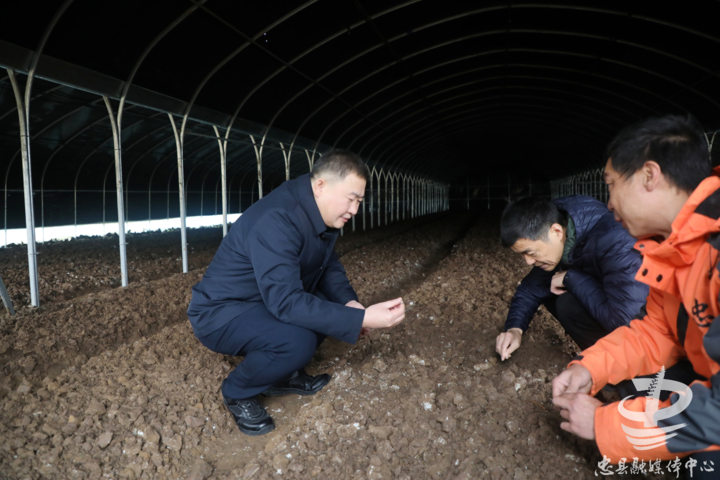 县委书记李电在白河村羊肚菌种植基地调研。 记者 余鸿 摄