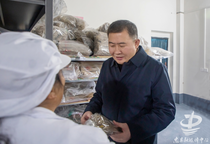 在白河村羊肚菌种植基地、小李村粉条加工厂调研时,李电与村“两委”干部和驻村工作队等深入交流,详细了解产业规模、生产经营、市场销售和带动村民增收等情况。他强调,发展壮大村级集体经济是强农业、美农村、富农民的重要举措,是实现乡村全面振兴的必由之路。各村要充分发挥基层党组织战斗堡垒作用和党员先锋模范作用,立足本地资源禀赋和产业基础,建立健全利益联结机制,围绕规模化、标准化、品牌化下功夫,做深做实“土特产”文章。要有效借助帮扶集团成员单位力量,把八方宾客引进来,让包含磨子特色农产品在内的“忠州佳品”走出去,助力乡村全面振兴。