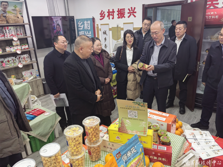 沈阳市副市长李逸群考察沈阳市直机关忠州佳品爱心驿站产品销售情况。 县水利局供图