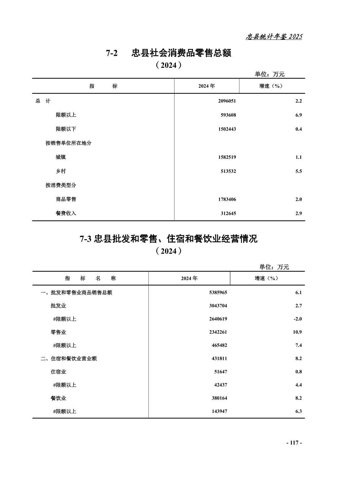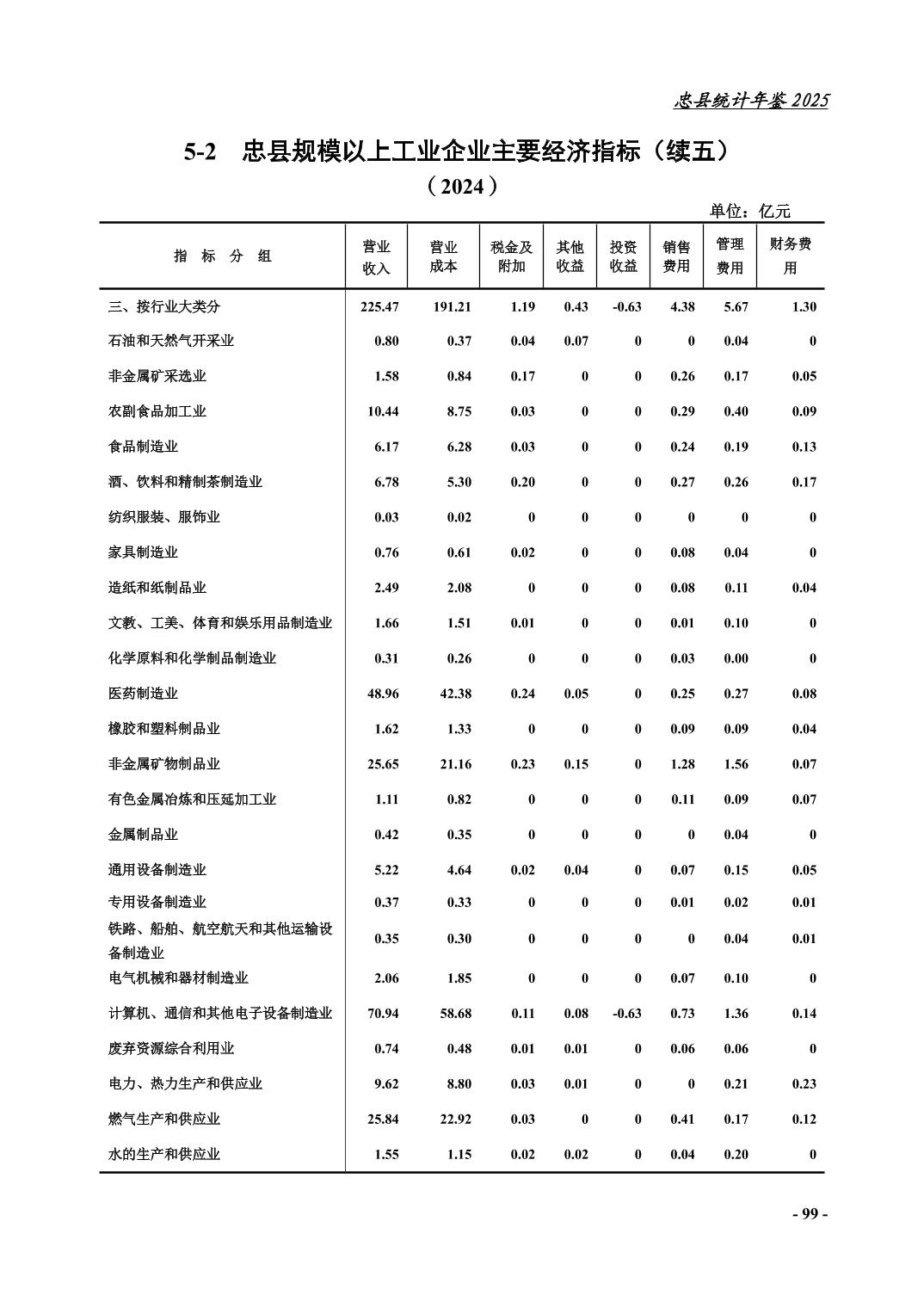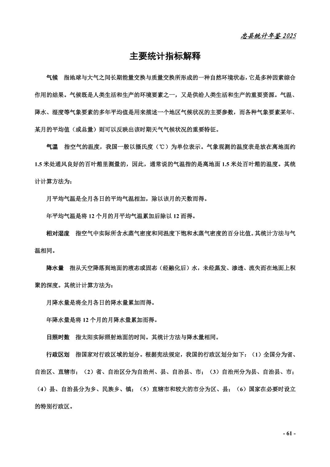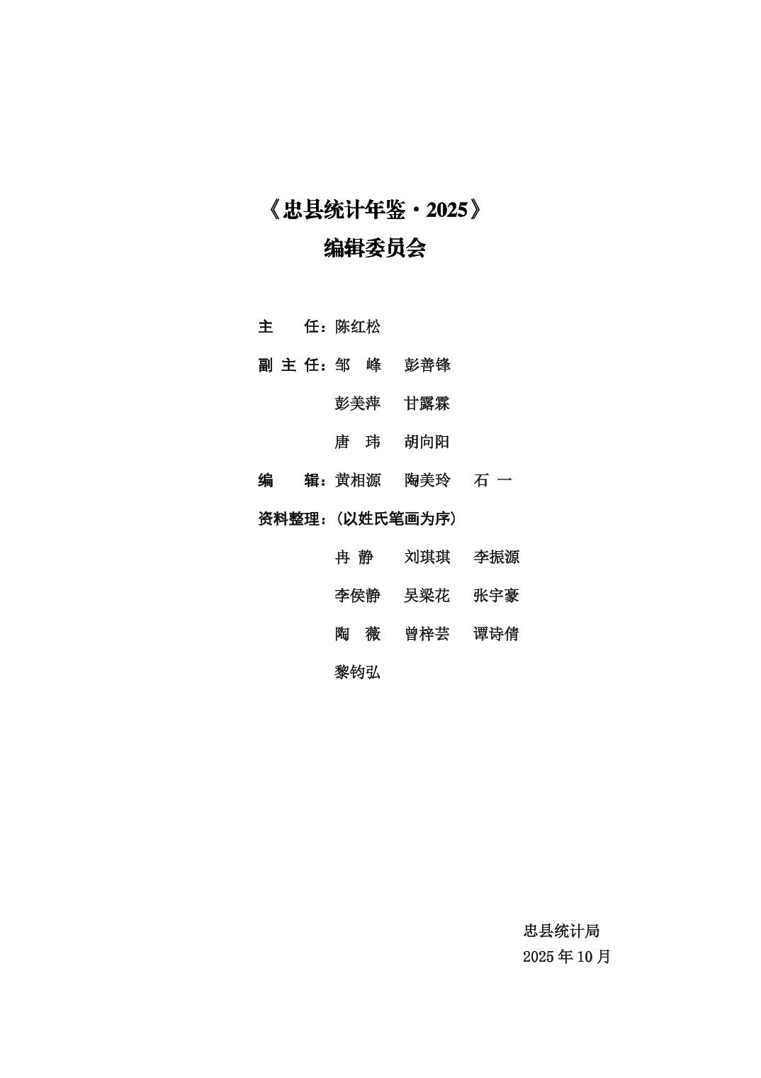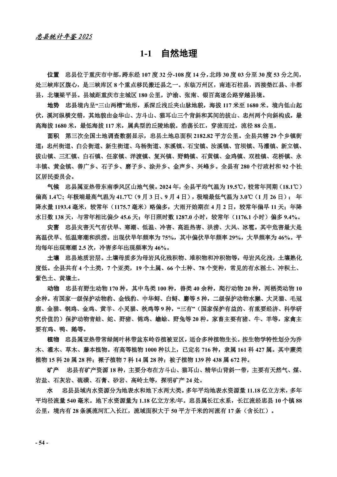 忠县2025年统计年鉴