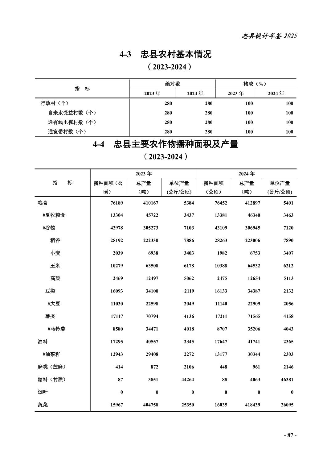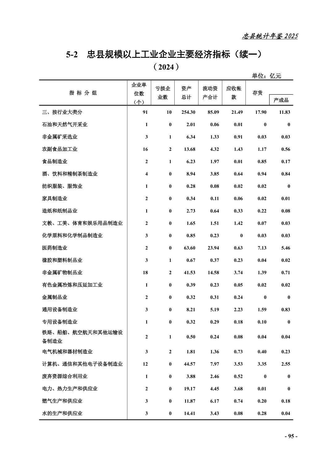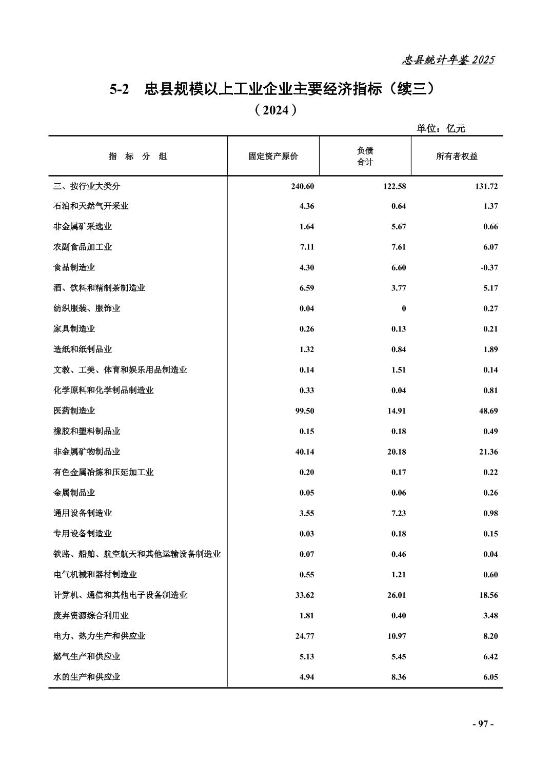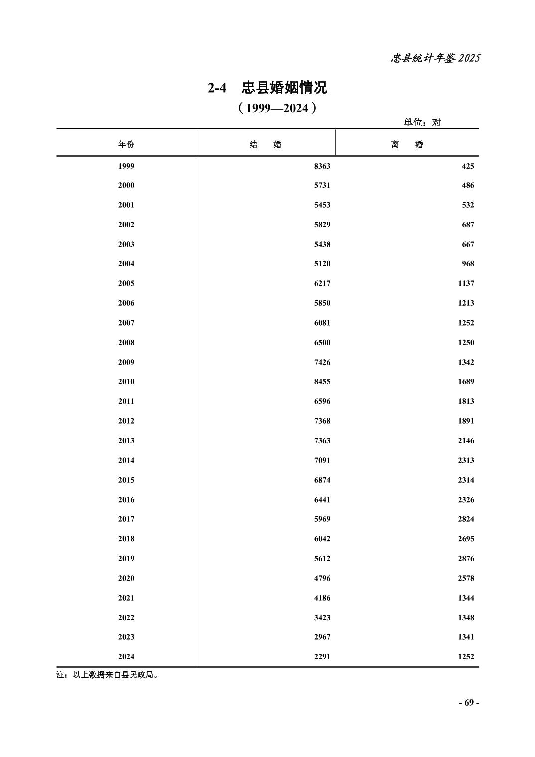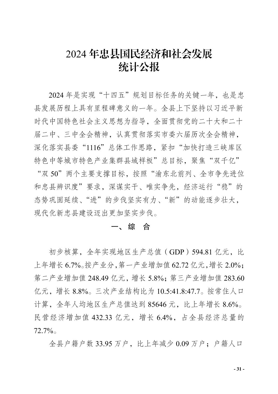 忠县2025年统计年鉴